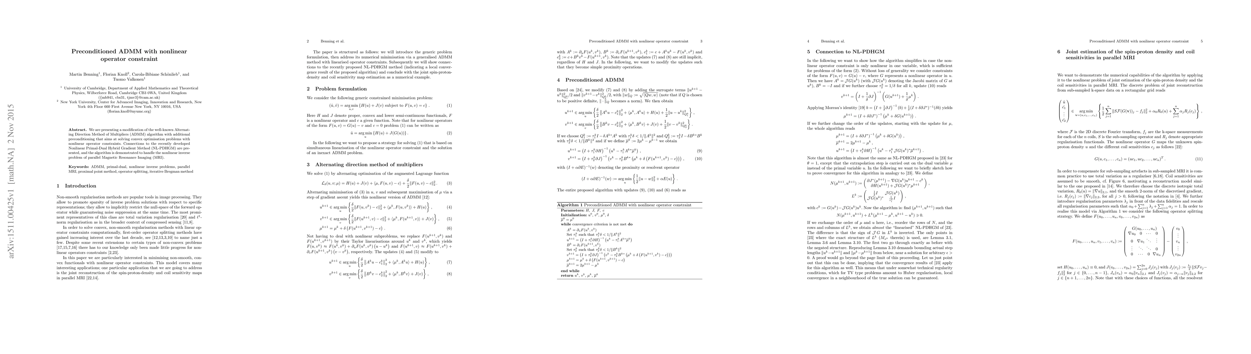 Researchers modified ADMM to handle nonlinear operator constraints, achieving success in solving MRI imaging problems, and demonstrating connections to the NL-PDHGM algorithm.