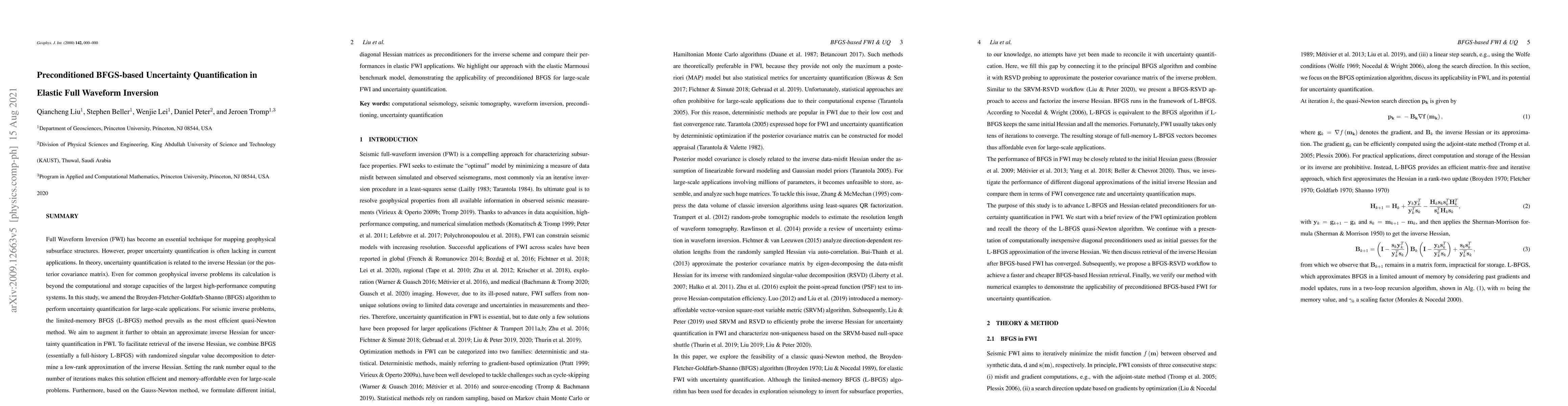 This paper proposes a preconditioned BFGS-based method for uncertainty quantification in elastic Full Waveform Inversion (FWI). It combines BFGS with randomized singular value decomposition for efficient inverse Hessian approximation, enabling practical uncertainty quantification in large-scale geophysical problems.