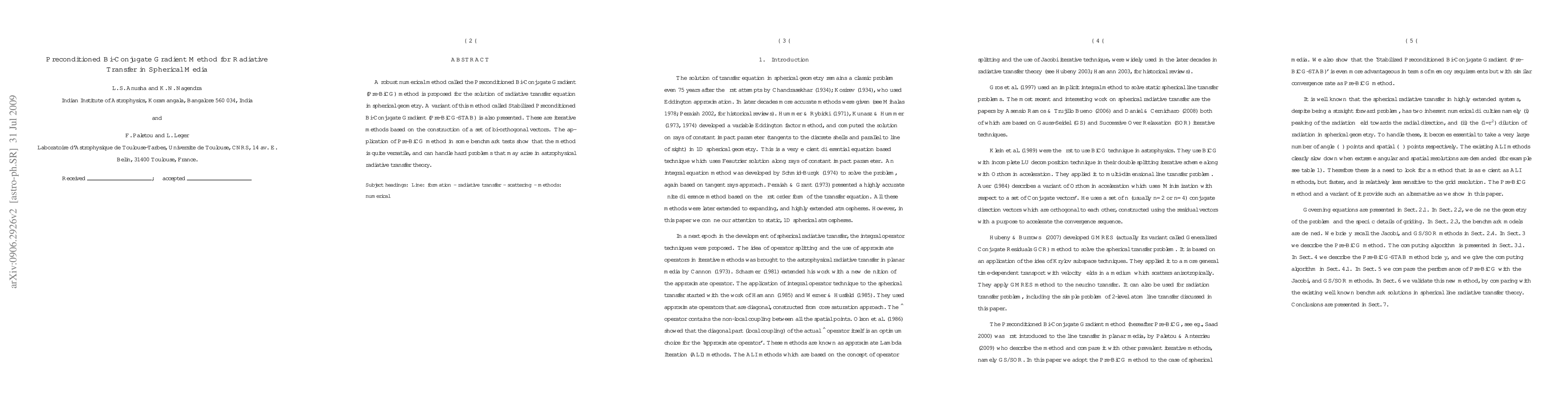 The paper proposes the Preconditioned Bi-Conjugate Gradient (Pre-BiCG) method and its stabilized variant, Pre-BiCG-STAB, for solving radiative transfer equations in spherical media. These iterative methods demonstrate versatility and effectiveness in handling complex astrophysical problems.