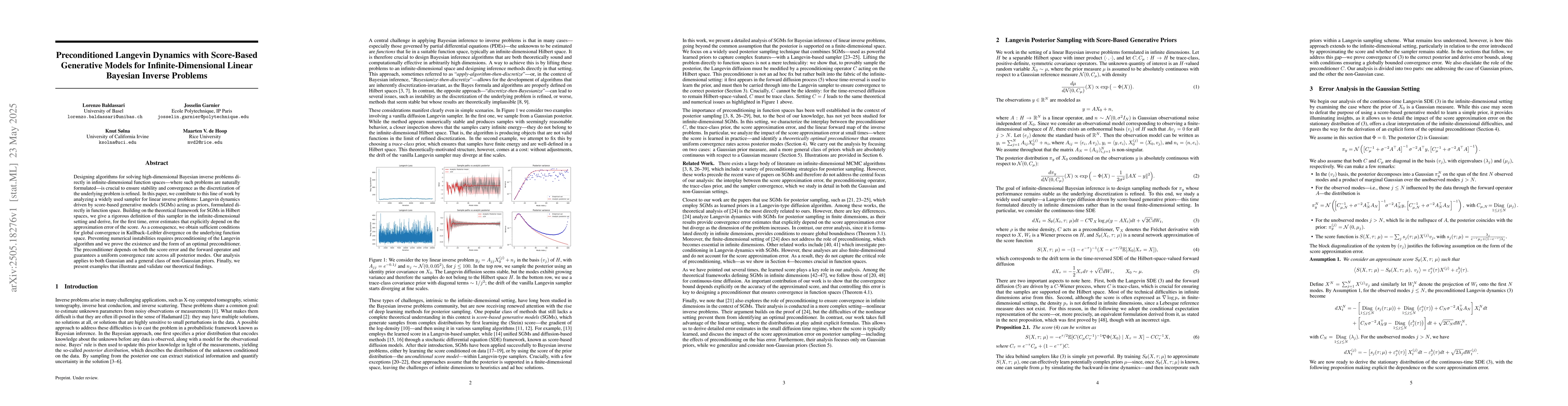 This paper develops a new method for solving infinite-dimensional Bayesian inverse problems using Langevin dynamics with score-based generative models, providing error estimates and sufficient conditions for global convergence.