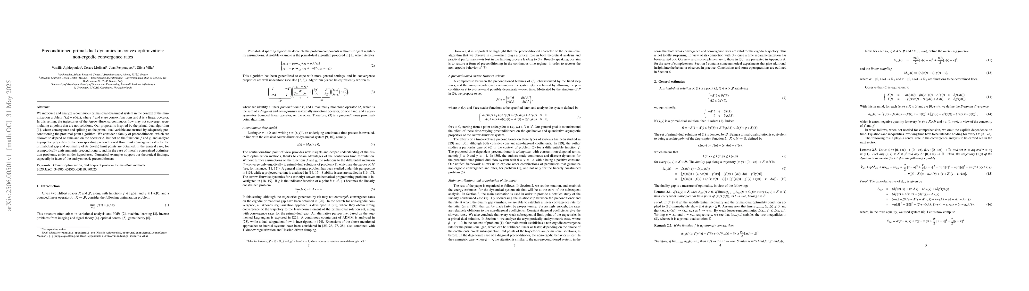Researchers developed a new method for convex optimization problems, introducing preconditioned primal-dual dynamics that can converge to optimal solutions even when the trajectories do not reach those points. The approach provides fast convergence rates in certain cases.