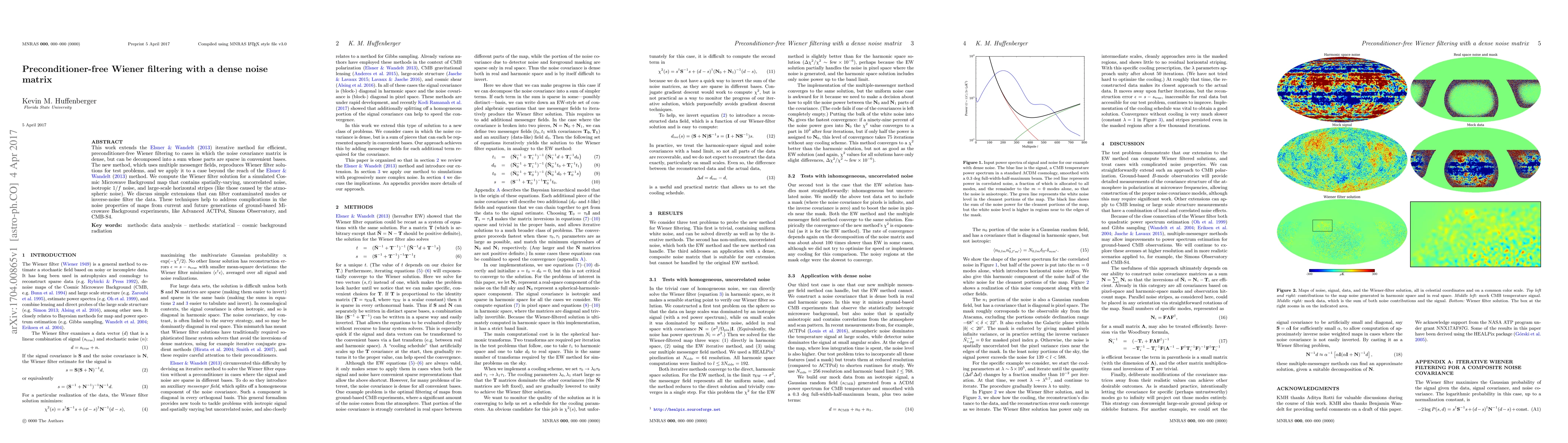 This paper introduces a preconditioner-free Wiener filtering method for dense noise matrices using multiple messenger fields, successfully applied to a simulated Cosmic Microwave Background map with complex noise. The technique extends the iterative method of Elsner & Wandelt (2013) to handle spatially-varying and large-scale noise issues in current and future ground-based experiments.