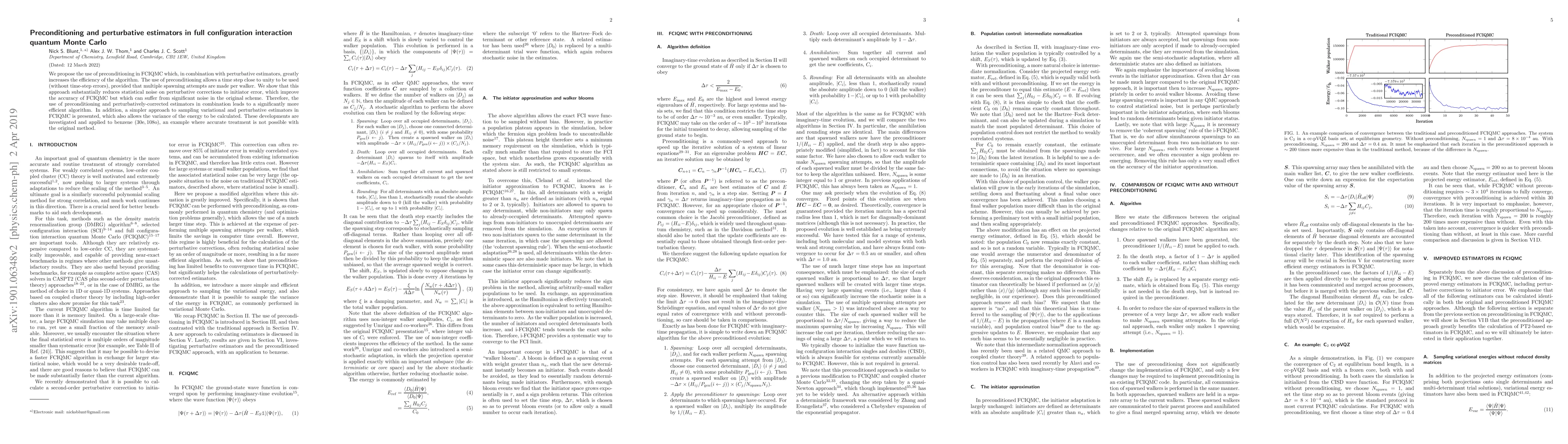 A new method combining preconditioning and perturbative estimators in full configuration interaction quantum Monte Carlo significantly reduces statistical noise and increases efficiency, leading to improved accuracy for molecular simulations.