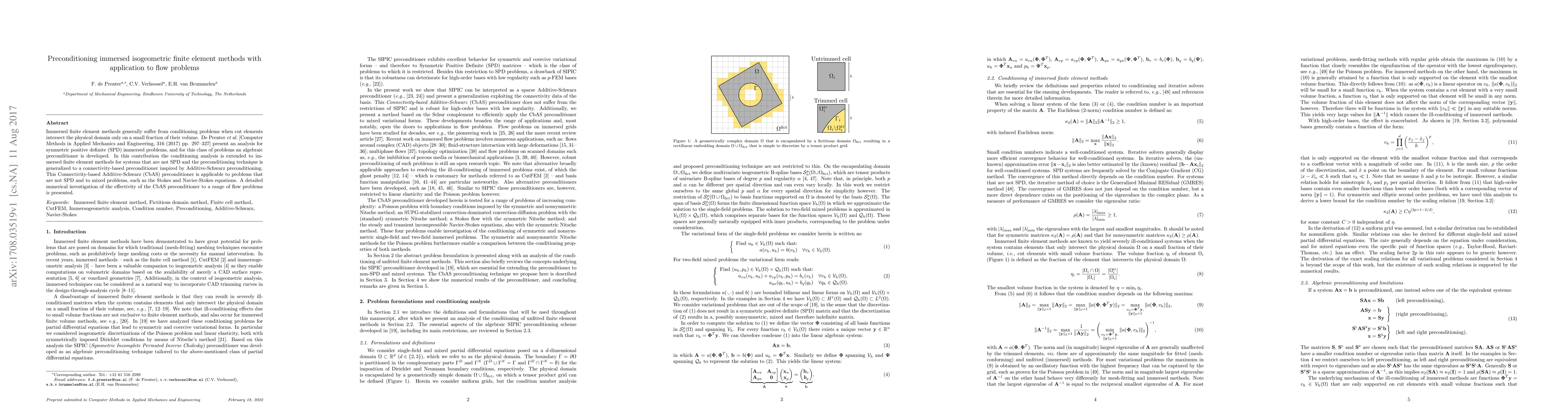 Immersed finite element methods generally suffer from conditioning problems when cut elements intersect the physical domain only on a small fraction of their volume. De Prenter et al. [Computer Methods in Applied Mechanics and Engineering, 316 (2017) pp. 297-327] present an analysis for symmetric positive definite (SPD) immersed problems, and for this class of problems an algebraic preconditioner is developed. In this contribution the conditioning analysis is extended to immersed finite element methods for systems that are not SPD and the preconditioning technique is generalized to a connectivity-based preconditioner inspired by Additive-Schwarz preconditioning. This Connectivity-based Additive-Schwarz (CbAS) preconditioner is applicable to problems that are not SPD and to mixed problems, such as the Stokes and Navier-Stokes equations. A detailed numerical investigation of the effectivity of the CbAS preconditioner to a range of flow problems is presented.