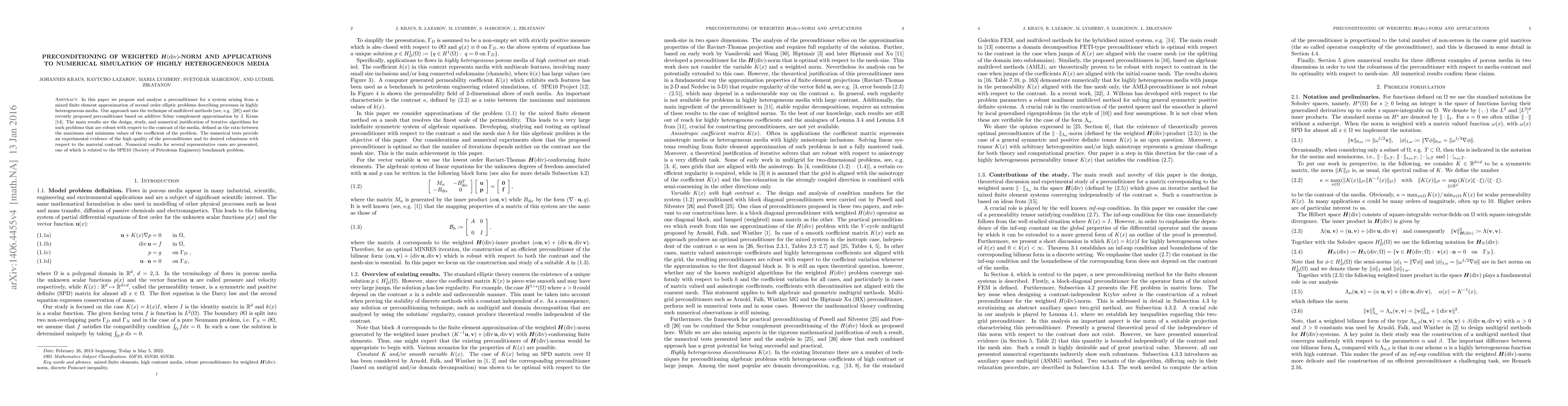 In this paper we propose and analyze a preconditioner for a system arising from a finite element approximation of second order elliptic problems describing processes in highly het- erogeneous media. Our approach uses the technique of multilevel methods and the recently proposed preconditioner based on additive Schur complement approximation by J. Kraus (see [8]). The main results are the design and a theoretical and numerical justification of an iterative method for such problems that is robust with respect to the contrast of the media, defined as the ratio between the maximum and minimum values of the coefficient (related to the permeability/conductivity).