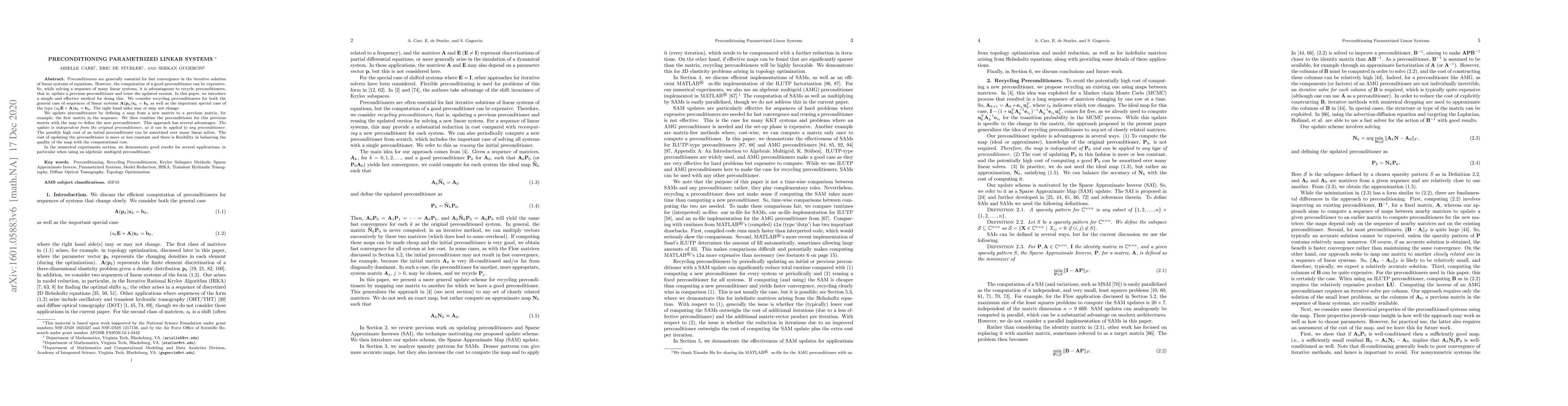 Preconditioners are generally essential for fast convergence in the iterative solution of linear systems of equations. However, the computation of a good preconditioner can be expensive. So, while solving a sequence of many linear systems, it is advantageous to recycle preconditioners, that is, update a previous preconditioner and reuse the updated version. In this paper, we introduce a simple and effective method for doing this. Although our approach can be used for matrices changing slowly in any way, we focus on the important case of sequences of the type $(s_k\textbf{E}(\textbf{p}) + \textbf{A}(\textbf{p}))\textbf{x}_k = \textbf{b}_k$, where the right hand side may or may not change. More general changes in matrices will be discussed in a future paper. We update preconditioners by defining a map from a new matrix to a previous matrix, for example the first matrix in the sequence, and combine the preconditioner for this previous matrix with the map to define the new preconditioner. This approach has several advantages. The update is entirely independent from the original preconditioner, so it can be applied to any preconditioner. The possibly high cost of an initial preconditioner can be amortized over many linear solves. The cost of updating the preconditioner is more or less constant and independent of the original preconditioner. There is flexibility in balancing the quality of the map with the computational cost. In the numerical experiments section we demonstrate good results for several applications, in particular when using an algebraic multigrid preconditioner.