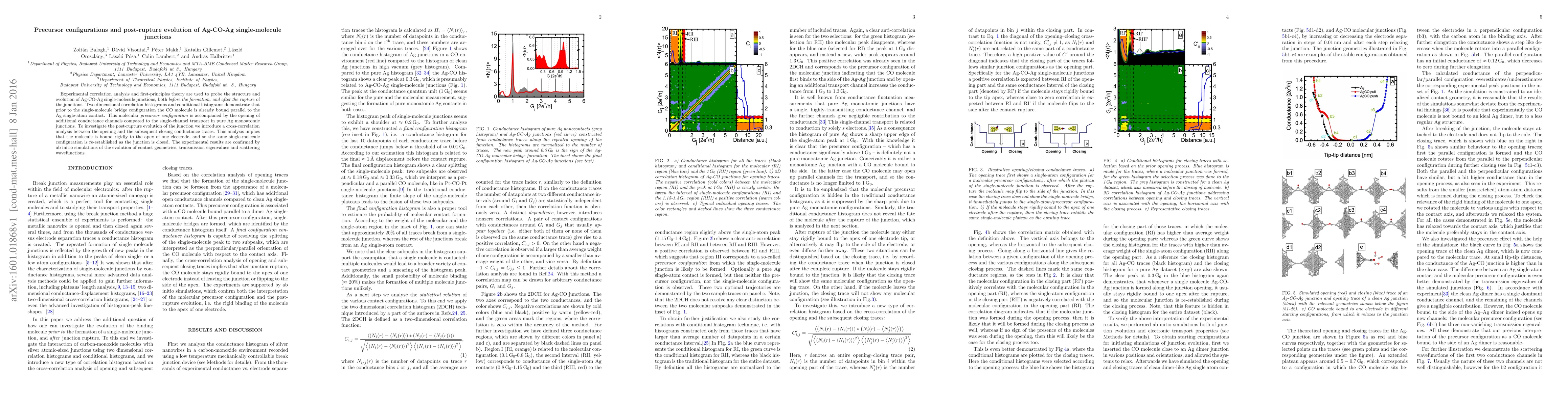 This paper investigates the precursor configurations and post-rupture evolution of Ag-CO-Ag single-molecule junctions using experimental correlation analysis and first-principles theory. It finds that CO molecules align parallel to Ag contacts before forming the junction, leading to additional conductance channels. Post-rupture analysis shows that the same molecular configuration is re-established when the junction closes, confirmed by ab initio simulations.