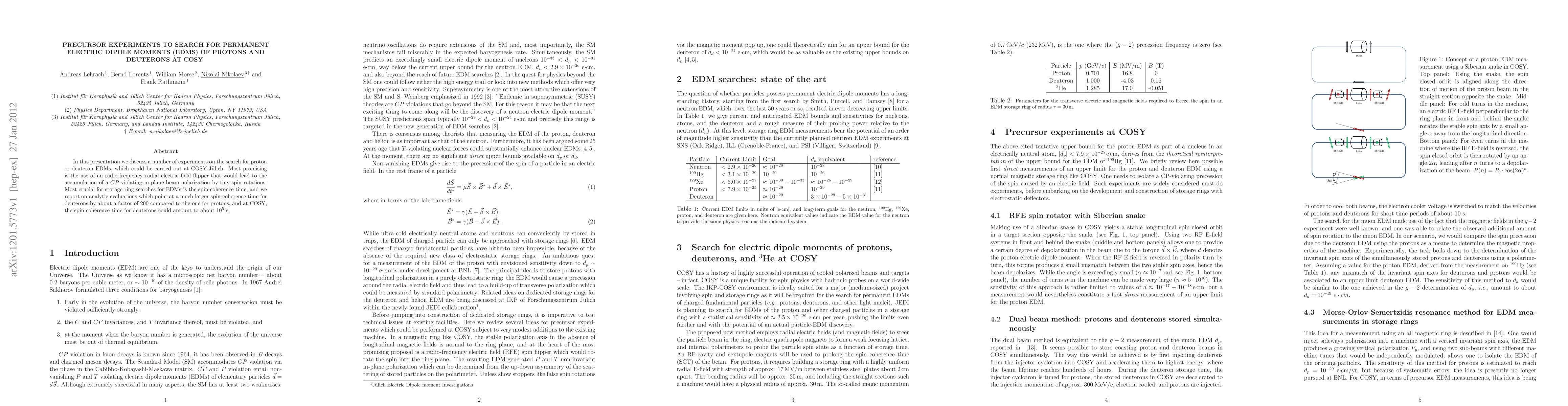 In this presentation we discuss a number of experiments on the search for proton or deuteron EDMs, which could be carried out at COSY-Juelich. Most promising is the use of an radio-frequency radial electric field flipper that would lead to the accumulation of a CP violating in-plane beam polarization by tiny spin rotations. Most crucial for storage ring searches for EDMs is the spin-coherence time, and we report on analytic evaluations which point at a much larger spin-coherence time for deuterons by about a factor of 200 compared to the one for protons, and at COSY, the spin coherence time for deuterons could amount to about 10 000 s.