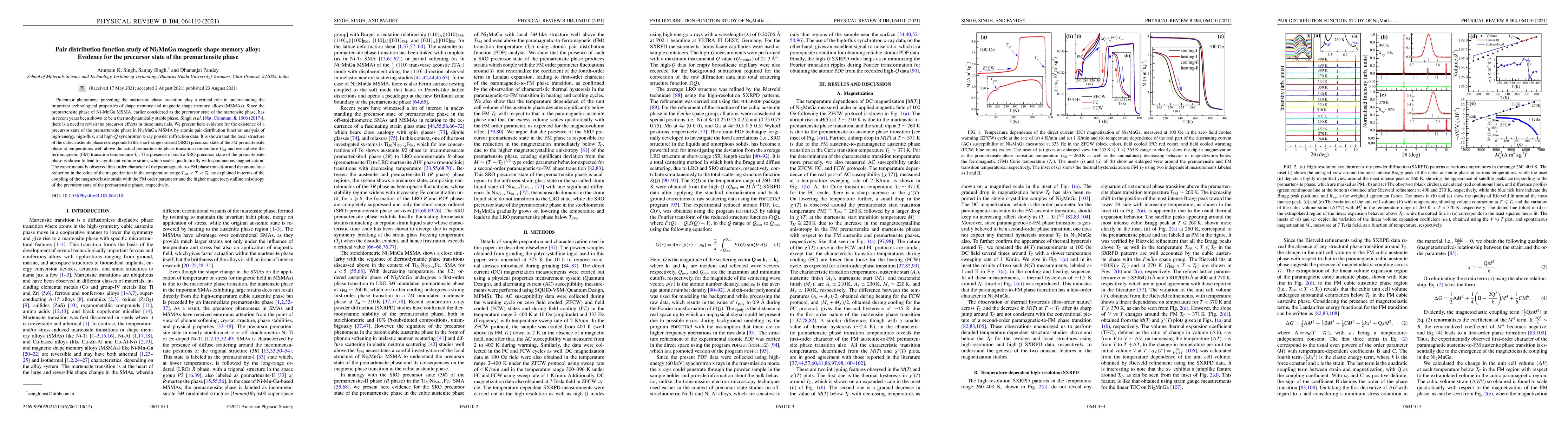 Researchers studied a magnetic shape memory alloy Ni2MnGa to understand the precursor state of martensite before its phase transition. They found evidence of a short-range ordered precursor state within the austenite matrix that affects the material's properties.