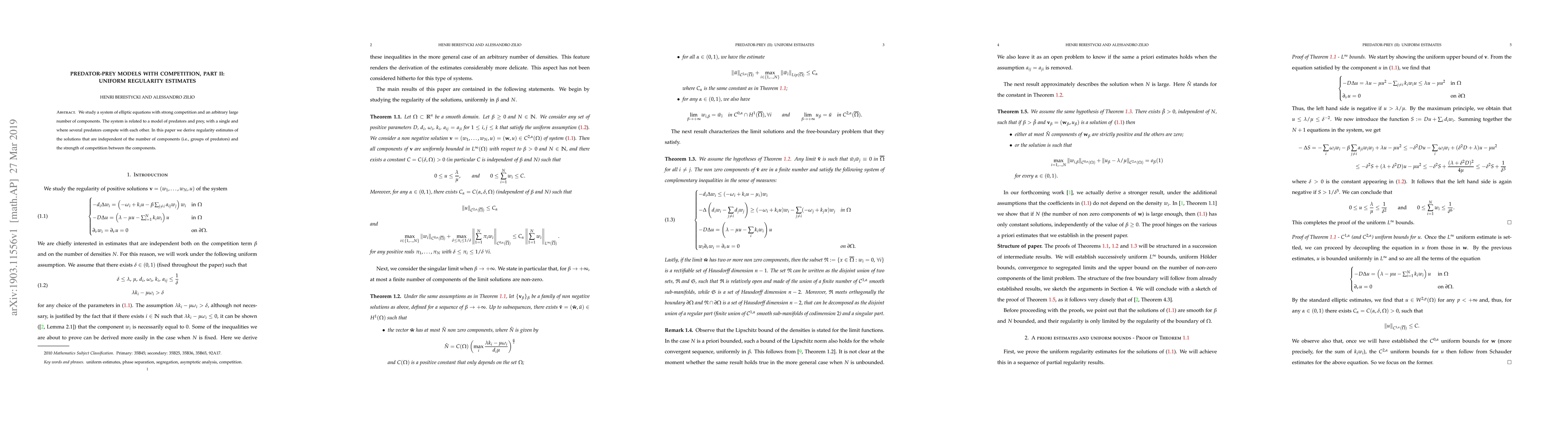 We study a system of elliptic equations with strong competition and an arbitrary large number of components. The system is related to a model of predators and prey, with a single and where several predators compete with each other. In this paper we derive regularity estimates of the solutions that are independent of the number of components (i.e., groups of predators) and the strength of competition between the components.