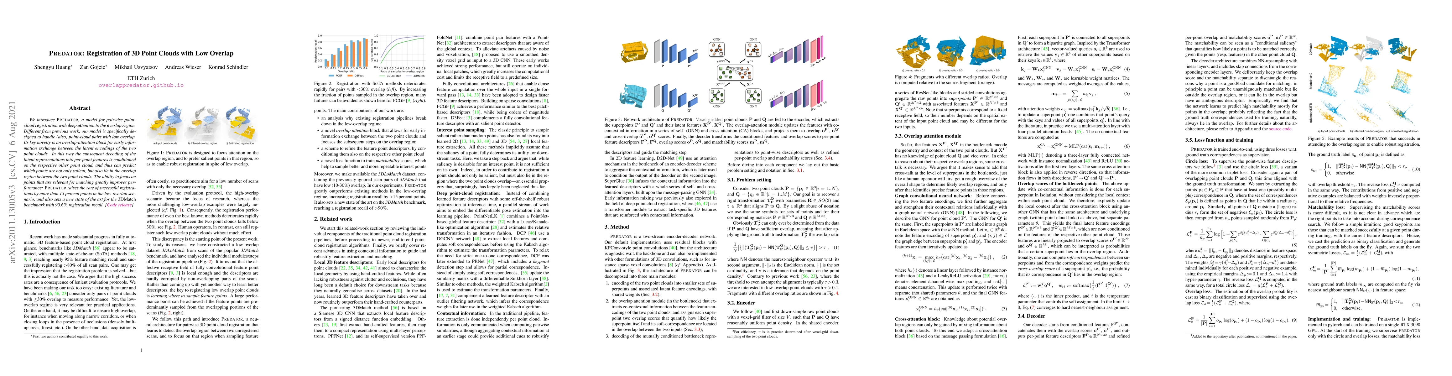 PREDATOR is a novel model for registering 3D point clouds with deep attention to the overlap region, especially effective for low overlap scenarios. It employs an overlap-attention block to enhance early information exchange, improving registration success rates by over 20% in low-overlap cases and achieving a new state-of-the-art 89% registration recall on the 3DMatch benchmark.