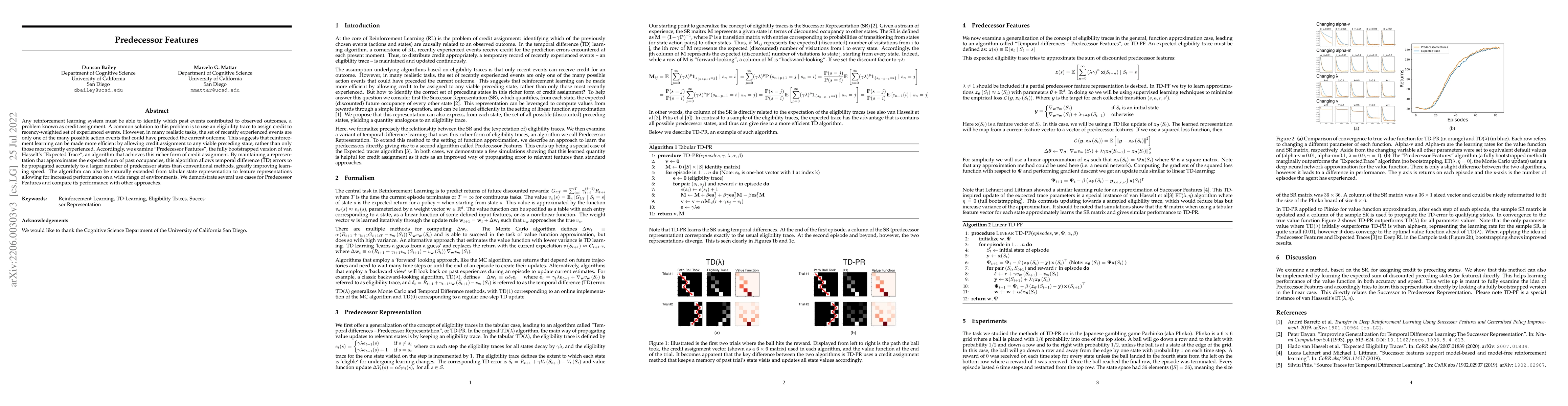 The paper proposes "Predecessor Features," a reinforcement learning algorithm that enhances credit assignment by propagating TD errors to a broader set of preceding states, not just the most recent ones. This approach improves learning speed and extends to feature representations, demonstrating superior performance across various environments.
