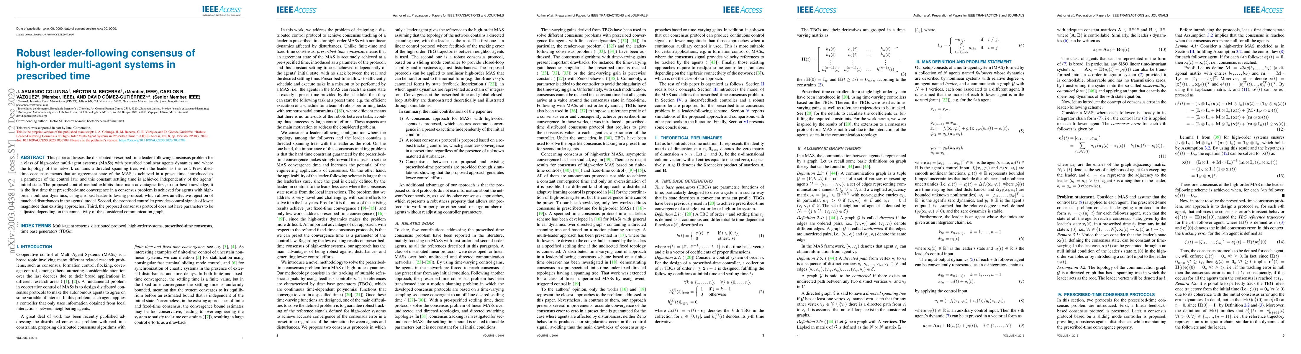 This paper addresses the distributed prescribed-time leader-following consensus problem for a class of high-order multi-agent systems (MASs) with perturbed nonlinear agents dynamics and where the topology of the network contains a directed spanning tree, with the leader as the root. Prescribed-time consensus means that an agreement state of the MAS is achieved in a preset time, introduced as a parameter of the control law, and this constant settling time is achieved independently of the agents' initial state. The proposed control method exhibits three main advantages: first, to our best knowledge, it is the first time that prescribed-time convergence in a consensus problem is achieved for agents with high-order nonlinear dynamics, using a robust leader-following protocol, which allows an effective rejection of matched disturbances in the agents' model. Second, the proposed controller provides control signals of lower magnitude than existing approaches. Third, the proposed consensus protocol does not have parameters to be adjusted depending on the connectivity of the considered communication graph.