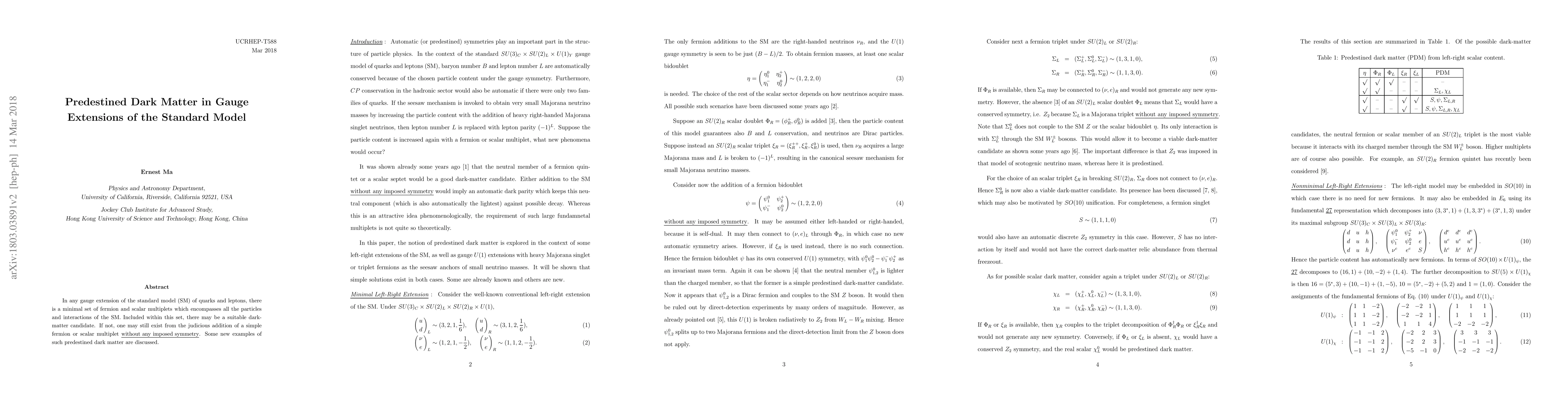 Researchers explore the possibility of predestined dark matter in gauge extensions of the Standard Model, proposing new candidates for a minimal set of particles and interactions that could make up dark matter.
