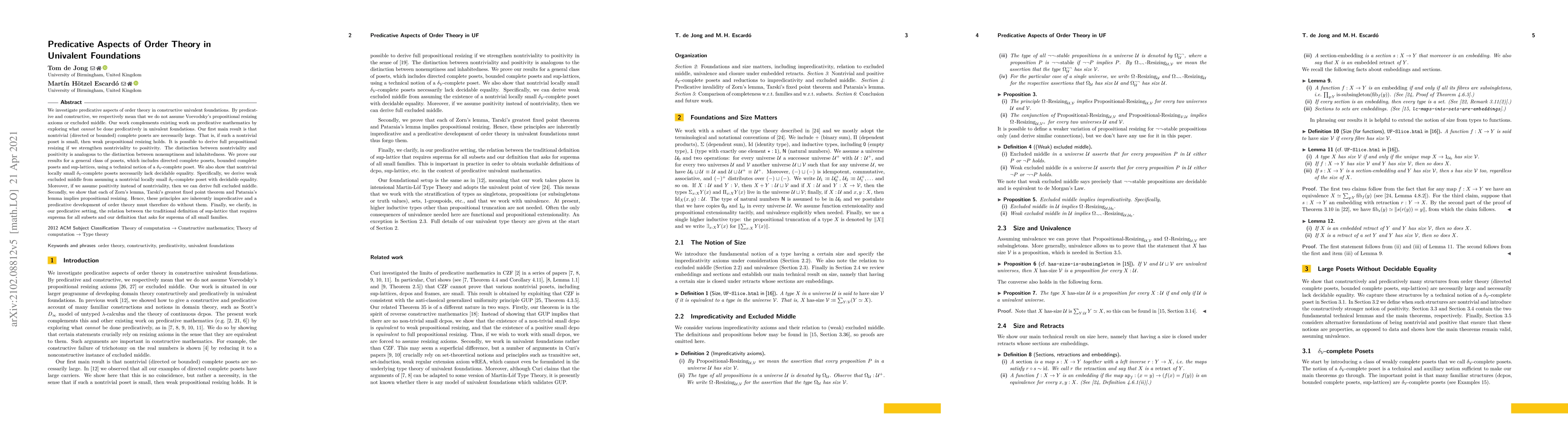 This paper examines predicative aspects of order theory within constructive univalent foundations, proving that nontrivial complete posets must be large and showing they cannot have decidable equality. It also demonstrates that Zorn's lemma and related principles are inherently impredicative, thus requiring a predicative approach to avoid them.