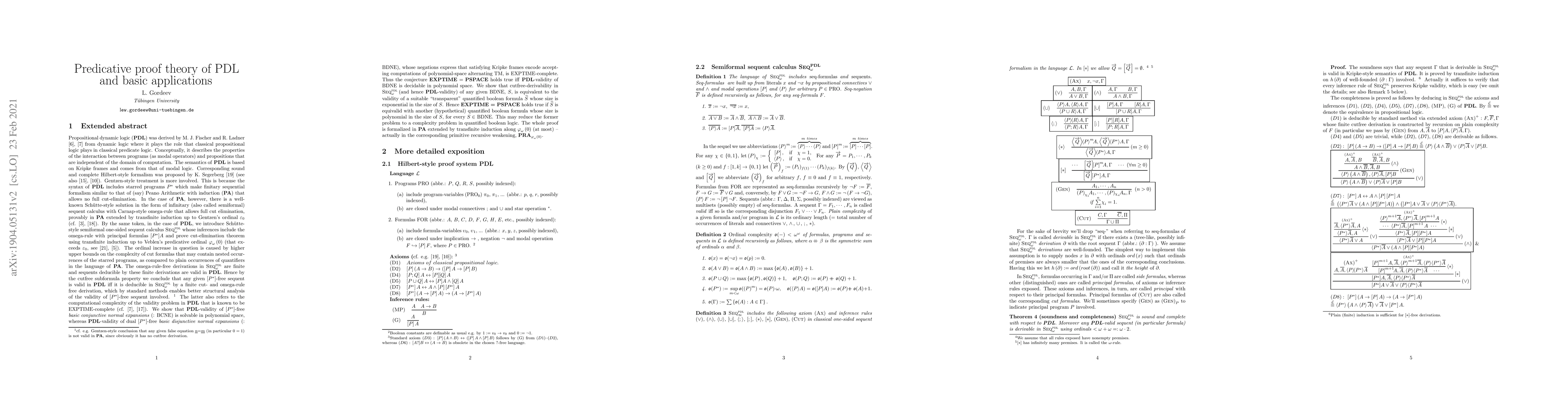 The paper presents a Schütte-style one-sided semiformal sequent calculus for propositional dynamic logic (PDL) and proves its cut-elimination theorem within a predicative extension of Peano Arithmetic. It shows that PDL-validity of star-free sequents is decidable in polynomial space and translates complex PDL problems into equivalent quantified Boolean formulas for analysis.