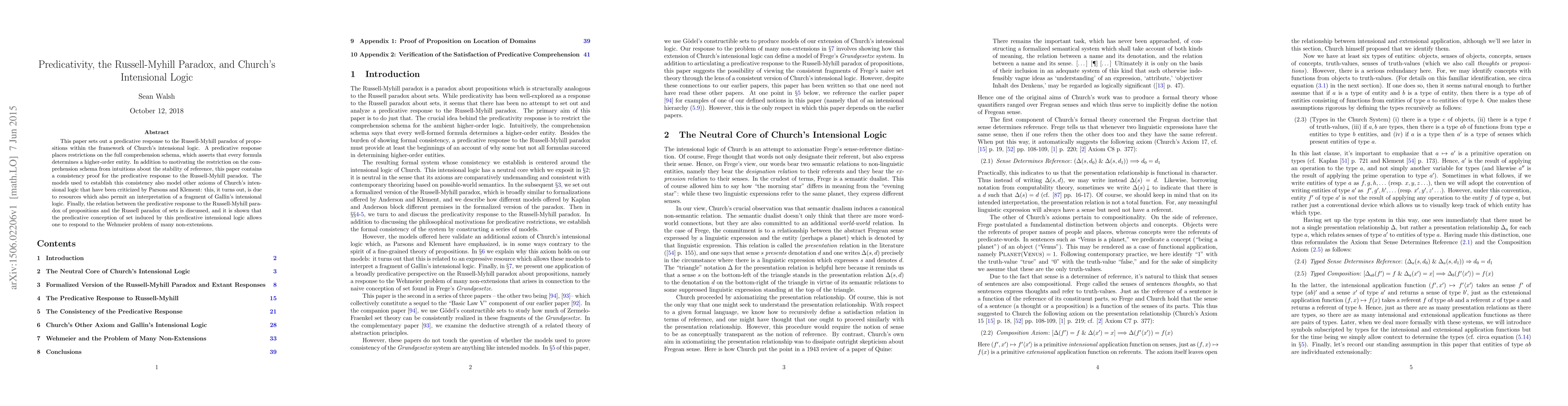This paper proposes a predicative solution to the Russell-Myhill paradox within Church's intensional logic, arguing for restrictions on the comprehension schema to stabilize reference, and provides a consistency proof for this approach. The models also address criticisms of other axioms in Church's logic and relate the predicative solution to the Russell paradox of sets, resolving the Wehmeier problem of many non-extensions.