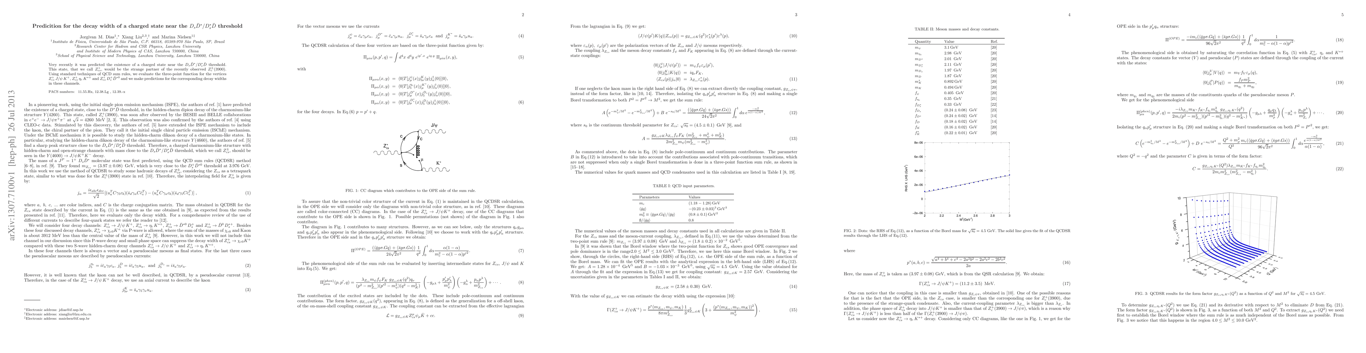 This paper predicts the decay widths of a newly proposed charged state, $Z_{cs}^+$, near the $D_s\bar{D}^*/D^*_s\bar{D}$ threshold using QCD sum rules. The study evaluates three-point functions for specific vertices and provides predictions for decay widths in these channels.