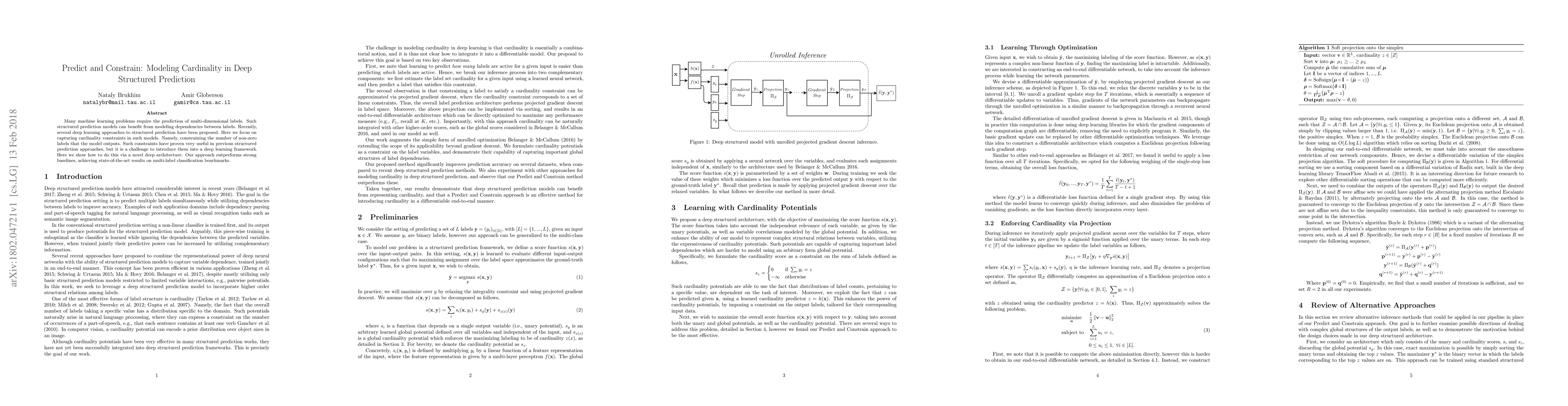 Many machine learning problems require the prediction of multi-dimensional labels. Such structured prediction models can benefit from modeling dependencies between labels. Recently, several deep learning approaches to structured prediction have been proposed. Here we focus on capturing cardinality constraints in such models. Namely, constraining the number of non-zero labels that the model outputs. Such constraints have proven very useful in previous structured prediction approaches, but it is a challenge to introduce them into a deep learning framework. Here we show how to do this via a novel deep architecture. Our approach outperforms strong baselines, achieving state-of-the-art results on multi-label classification benchmarks.