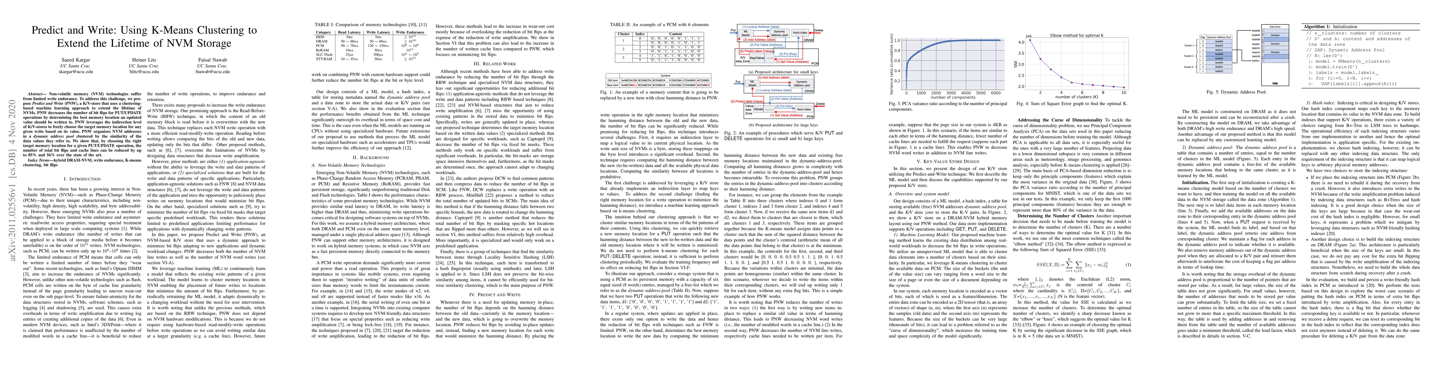 Non-volatile memory (NVM) technologies suffer from limited write endurance. To address this challenge, we propose Predict and Write (PNW), a K/V-store that uses a clustering-based machine learning approach to extend the lifetime of NVMs. PNW decreases the number of bit flips for PUT/UPDATE operations by determining the best memory location an updated value should be written to. PNW leverages the indirection level of K/V-stores to freely choose the target memory location for any given write based on its value. PNW organizes NVM addresses in a dynamic address pool clustered by the similarity of the data values they refer to. We show that, by choosing the right target memory location for a given PUT/UPDATE operation, the number of total bit flips and cache lines can be reduced by up to 85% and 56% over the state of the art.