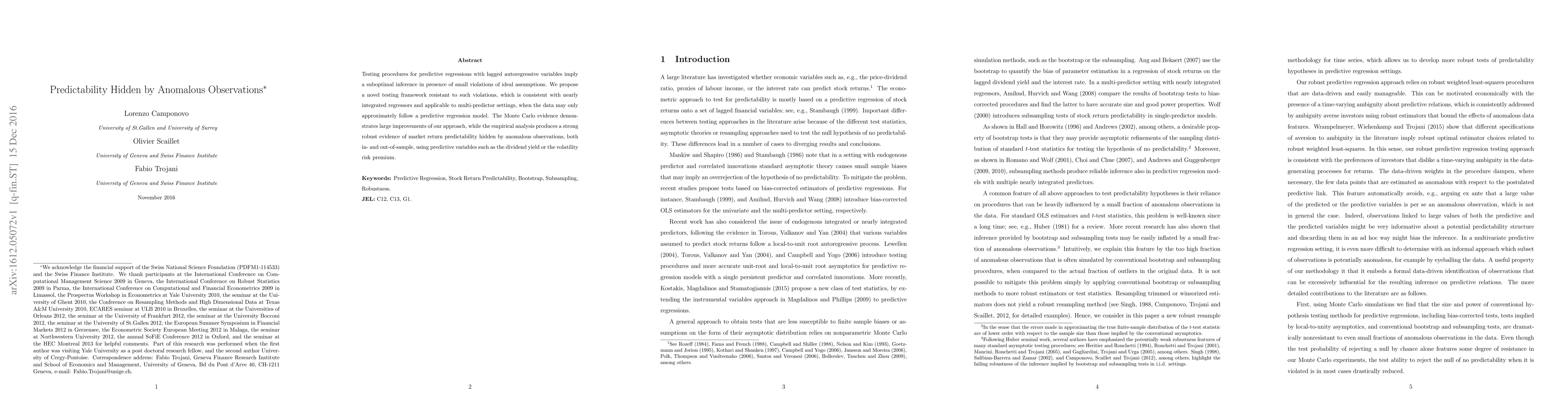 Researchers develop a new testing framework to detect predictability in financial markets despite small violations of assumptions, finding strong evidence of market return predictability hidden by anomalous observations.