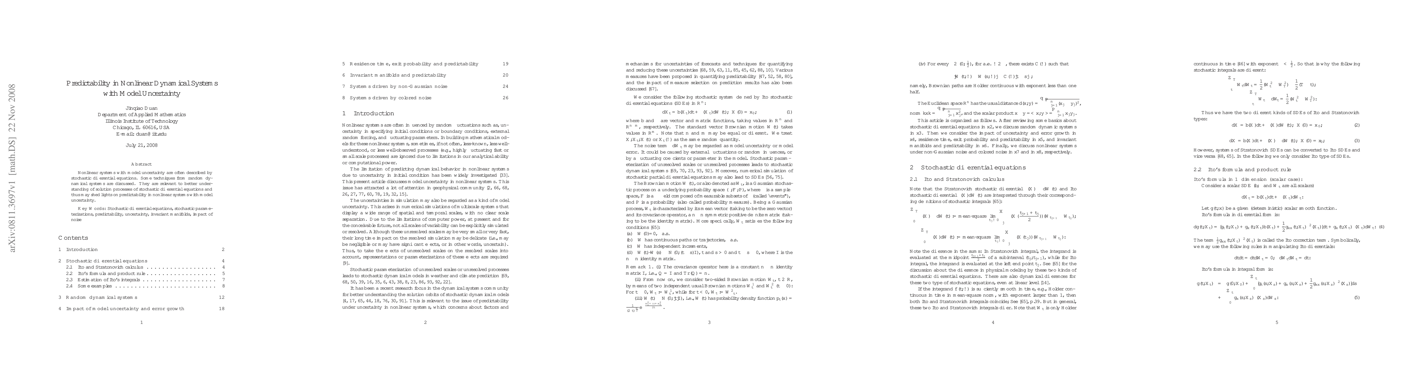 Nonlinear systems with model uncertainty are often described by stochastic differential equations. Some techniques from random dynamical systems are discussed. They are relevant to better understanding of solution processes of stochastic differential equations and thus may shed lights on predictability in nonlinear systems with model uncertainty.
