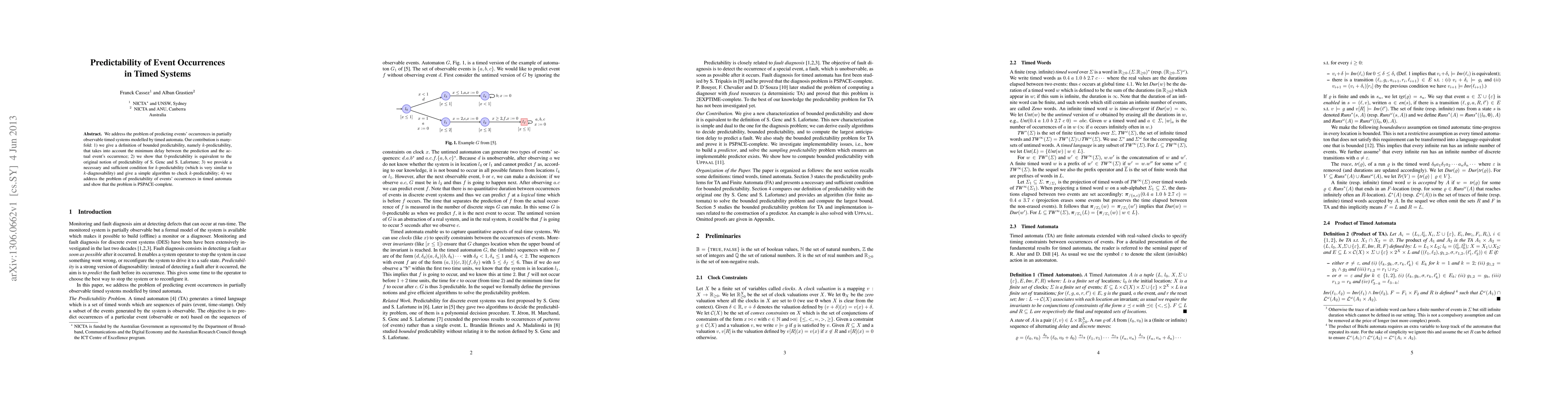 This paper defines k-predictability for timed automata, establishing a necessary and sufficient condition for it and presenting an algorithm for checking it. It also proves that the predictability problem for timed automata is PSPACE-complete.