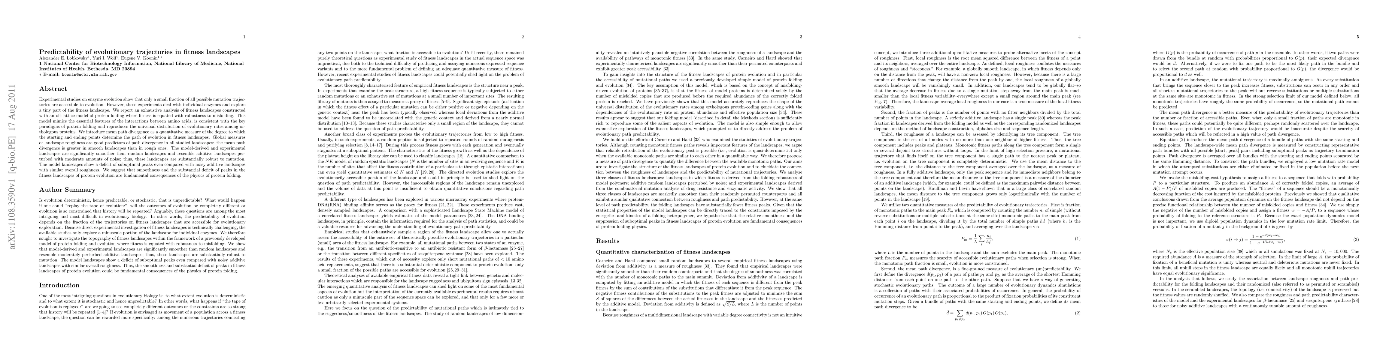 This paper investigates the predictability of evolutionary trajectories in protein fitness landscapes using an off-lattice model of protein folding. It finds that smoother landscapes, which are more robust to mutation, exhibit greater predictability of evolutionary paths, suggesting fundamental physical constraints on protein evolution.