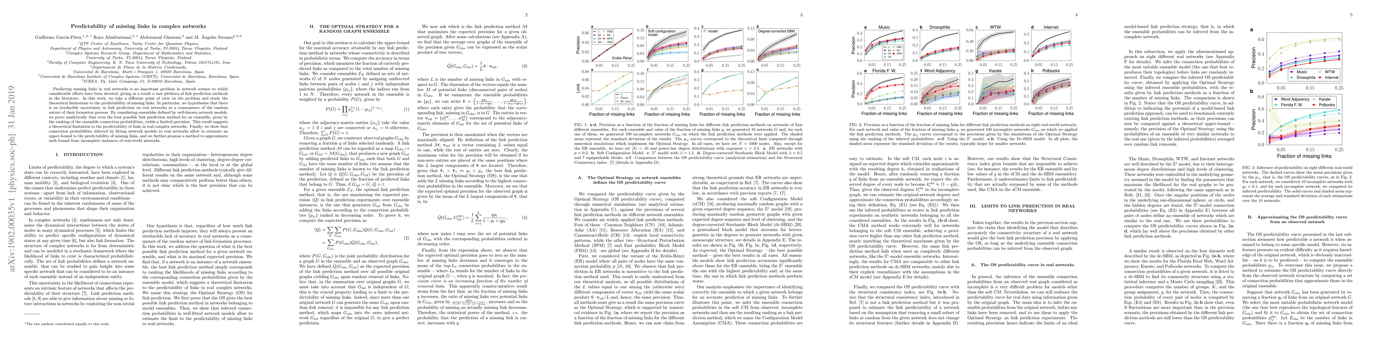 Predicting missing links in real networks is an important problem in network science to which considerable efforts have been devoted, giving as a result a vast plethora of link prediction methods in the literature. In this work, we take a different point of view on the problem and study the theoretical limitations to the predictability of missing links. In particular, we hypothesise that there is an irreducible uncertainty in link prediction on real networks as a consequence of the random nature of their formation process. By considering ensembles defined by well-known network models, we prove analytically that even the best possible link prediction method for an ensemble, given by the ranking of the ensemble connection probabilities, yields a limited precision. This result suggests a theoretical limitation to the predictability of links in real complex networks. Finally, we show that connection probabilities inferred by fitting network models to real networks allow to estimate an upper-bound to the predictability of missing links, and we further propose a method to approximate such bound from incomplete instances of real-world networks.