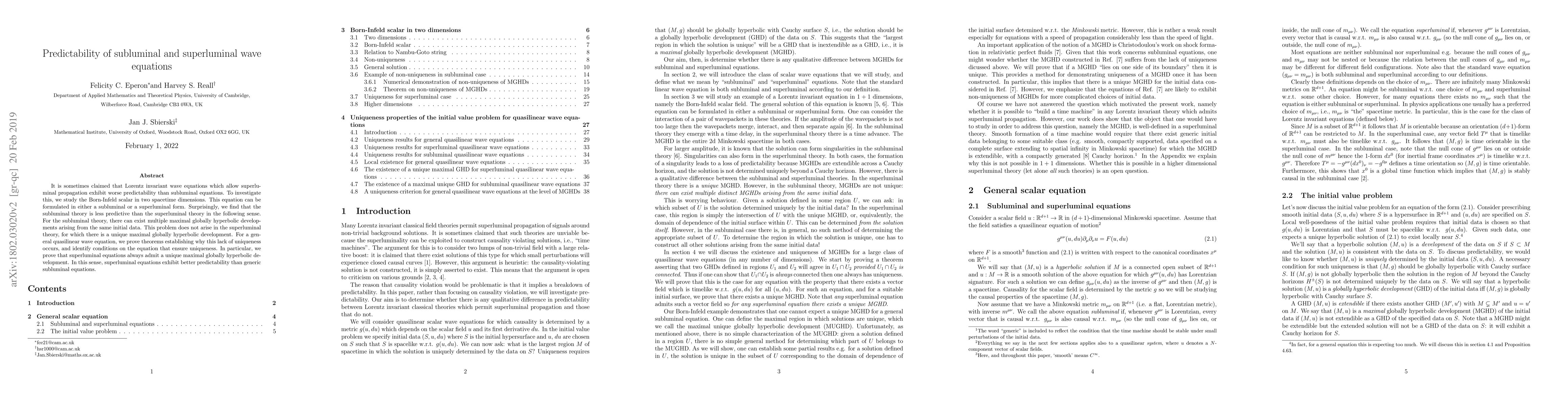 It is sometimes claimed that Lorentz invariant wave equations which allow superluminal propagation exhibit worse predictability than subluminal equations. To investigate this, we study the Born-Infeld scalar in two spacetime dimensions. This equation can be formulated in either a subluminal or a superluminal form. Surprisingly, we find that the subluminal theory is less predictive than the superluminal theory in the following sense. For the subluminal theory, there can exist multiple maximal globally hyperbolic developments arising from the same initial data. This problem does not arise in the superluminal theory, for which there is a unique maximal globally hyperbolic development. For a general quasilinear wave equation, we prove theorems establishing why this lack of uniqueness occurs, and identify conditions on the equation that ensure uniqueness. In particular, we prove that superluminal equations always admit a unique maximal globally hyperbolic development. In this sense, superluminal equations exhibit better predictability than generic subluminal equations.