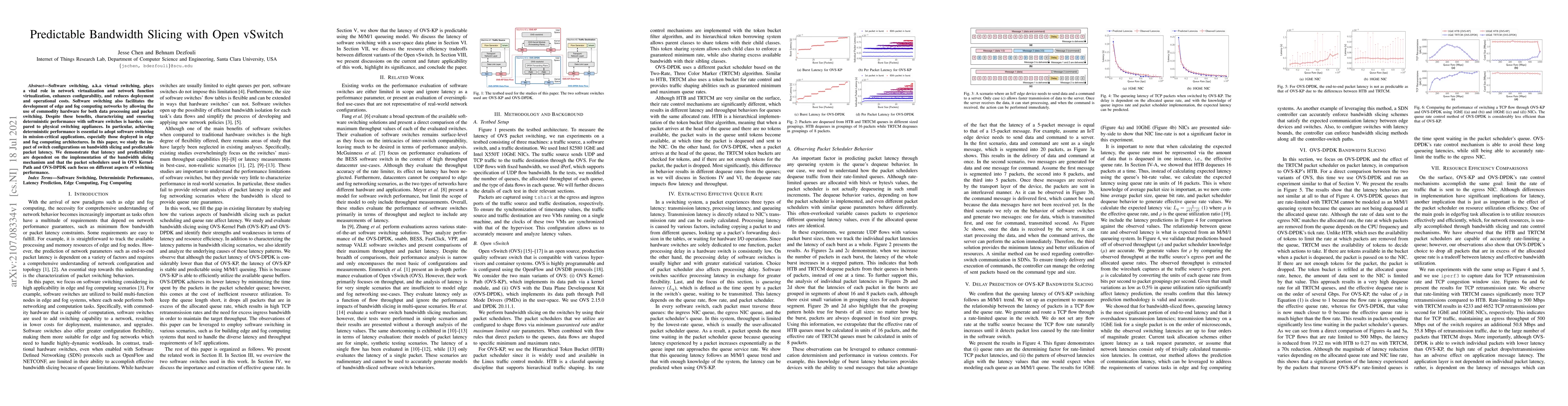 Software switching, a.k.a virtual switching, plays a vital role in network virtualization and network function virtualization, enhances configurability, and reduces deployment and operational costs. Software switching also facilitates the development of edge and fog computing networks by allowing the use of commodity hardware for both data processing and packet switching. Despite these benefits, characterizing and ensuring deterministic performance with software switches is harder, compared to physical switching appliances. In particular, achieving deterministic performance is essential to adopt software switching in mission-critical applications, especially those deployed in edge and fog computing architectures. In this paper, we study the impact of switch configurations on bandwidth slicing and predictable packet latency. We demonstrate that latency and predictability are dependent on the implementation of the bandwidth slicing mechanism and that the packet schedulers used in OVS Kernel-Path and OVS-DPDK each focus on different aspects of switching performance.