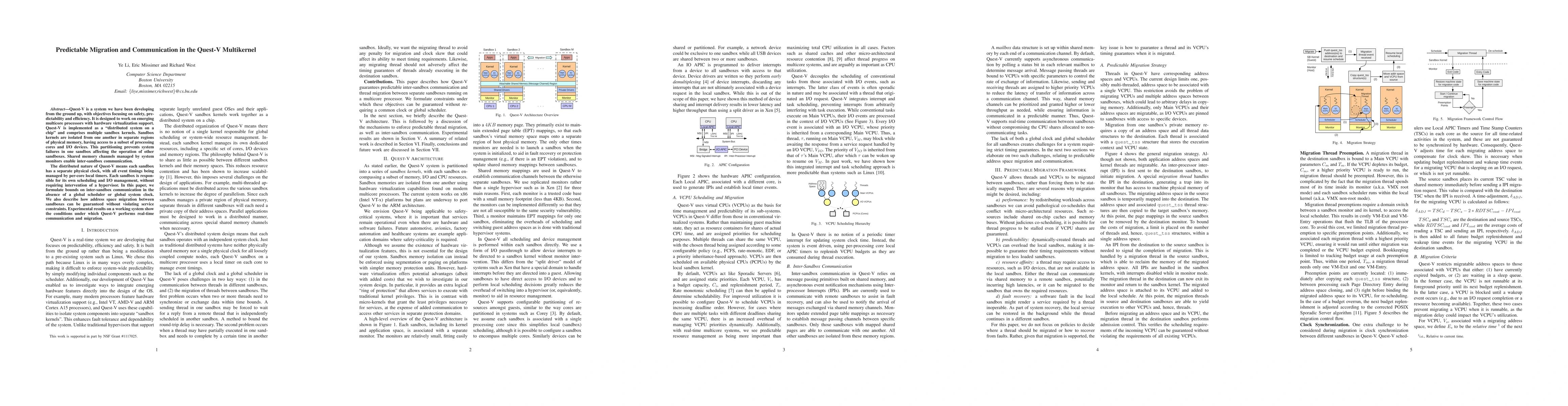 This paper explores the design and implementation of Quest-V, a multikernel system for multicore processors, emphasizing safety, predictability, and efficiency. It details the system's distributed architecture, enabling predictable migration and communication between sandbox kernels without a global scheduler or clock, validated through experimental results.