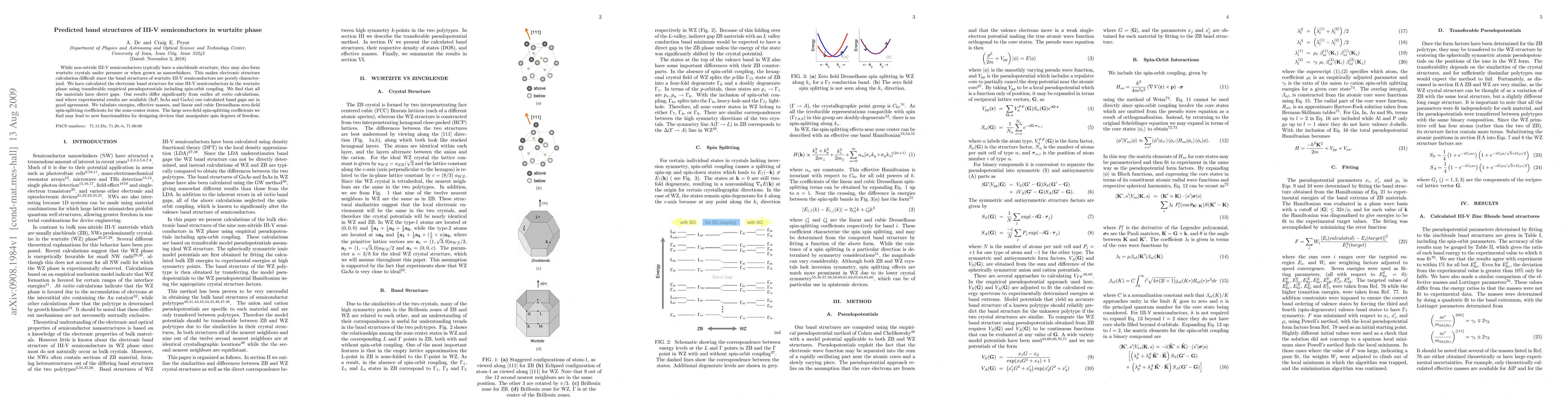 This paper calculates the electronic band structures for nine III-V semiconductors in the wurtzite phase using transferable empirical pseudopotentials, finding all materials have direct gaps and providing significant improvements over previous calculations. The study also highlights potential new device functionalities based on the large zero-field spin-splitting coefficients.