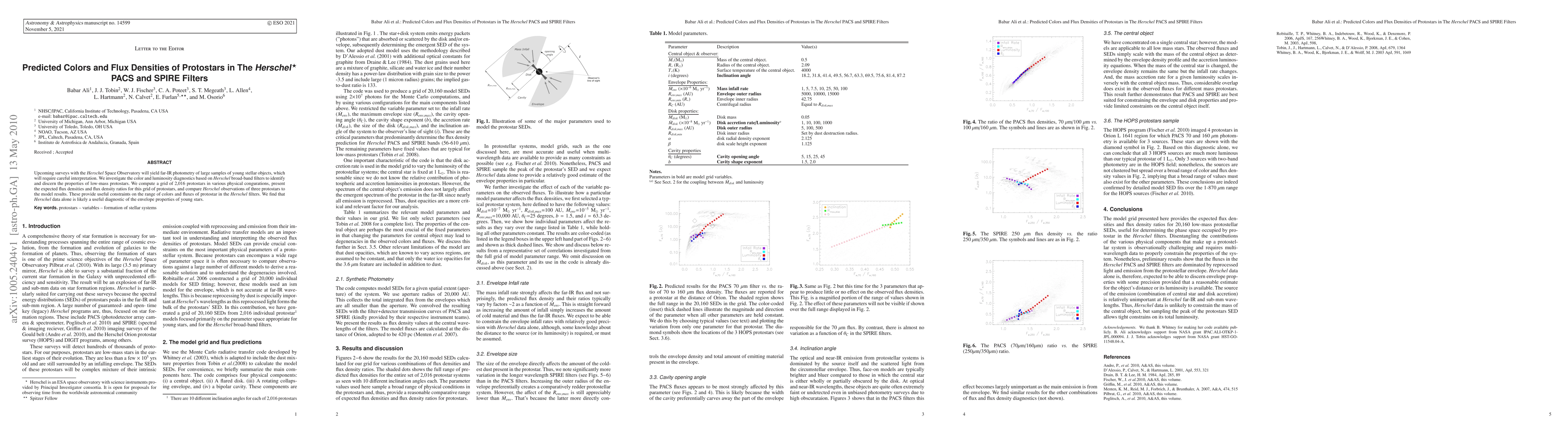 Upcoming surveys with the Herschel Space Observatory will yield far-IR photometry of large samples of young stellar objects, which will require careful interpretation. We investigate the color and luminosity diagnostics based on Herschel broad-band filters to identify and discern the properties of low-mass protostars. We compute a grid of 2,016 protostars in various physical congurations, present the expected flux densities and flux density ratios for this grid of protostars, and compare Herschel observations of three protostars to the model results. These provide useful constraints on the range of colors and fluxes of protostar in the Herschel filters. We find that Herschel data alone is likely a useful diagnostic of the envelope properties of young stars