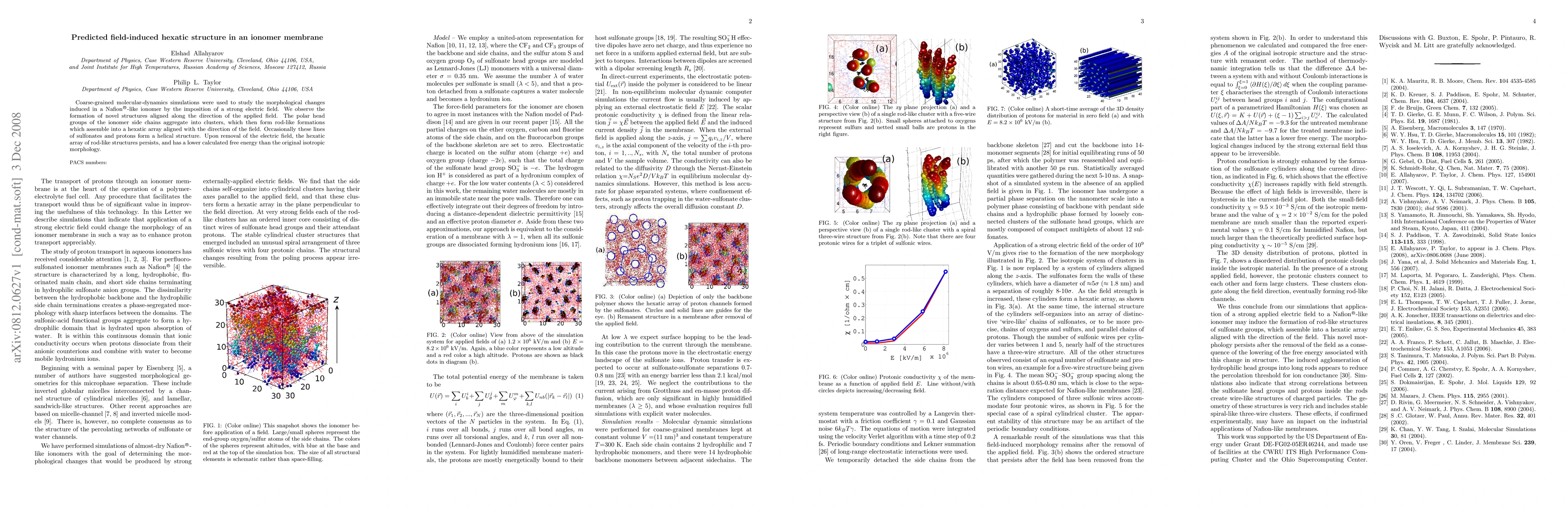 Researchers used computer simulations to study how an ionomer membrane changes shape when exposed to a strong electric field. They found that the membrane forms a hexatic structure aligned with the field direction, which persists even after the field is removed.