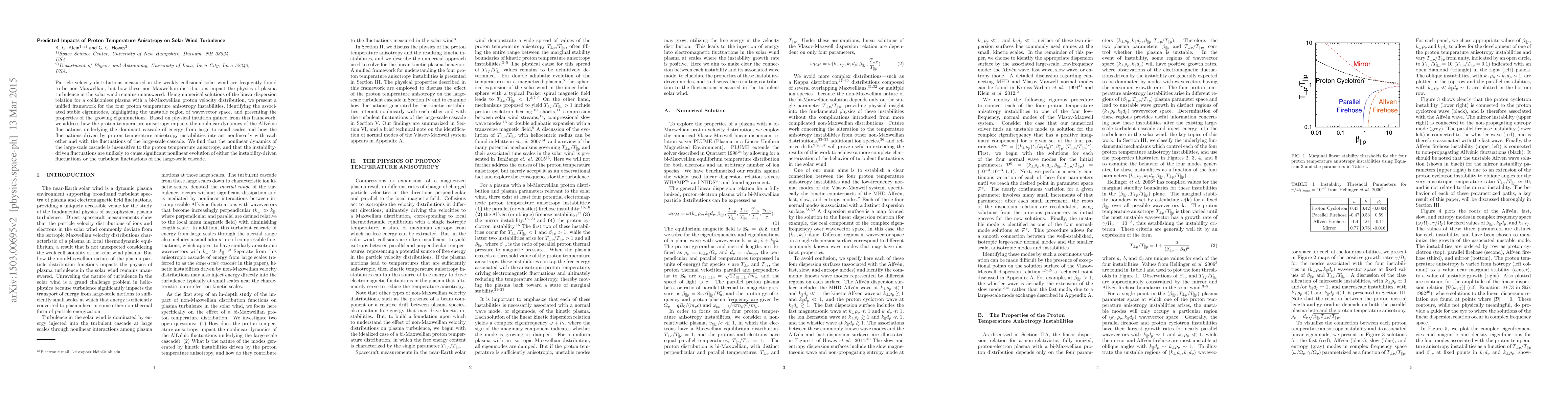 Particle velocity distributions measured in the weakly collisional solar wind are frequently found to be non-Maxwellian, but how these non-Maxwellian distributions impact the physics of plasma turbulence in the solar wind remains unanswered. Using numerical solutions of the linear dispersion relation for a collisionless plasma with a bi-Maxwellian proton velocity distribution, we present a unified framework for the four proton temperature anisotropy instabilities, identifying the associated stable eigenmodes, highlighting the unstable region of wavevector space, and presenting the properties of the growing eigenfunctions. Based on physical intuition gained from this framework, we address how the proton temperature anisotropy impacts the nonlinear dynamics of the \Alfvenic fluctuations underlying the dominant cascade of energy from large to small scales and how the fluctuations driven by proton temperature anisotropy instabilities interact nonlinearly with each other and with the fluctuations of the large-scale cascade. We find that the nonlinear dynamics of the large-scale cascade is insensitive to the proton temperature anisotropy, and that the instability-driven fluctuations are unlikely to cause significant nonlinear evolution of either the instability-driven fluctuations or the turbulent fluctuations of the large-scale cascade.