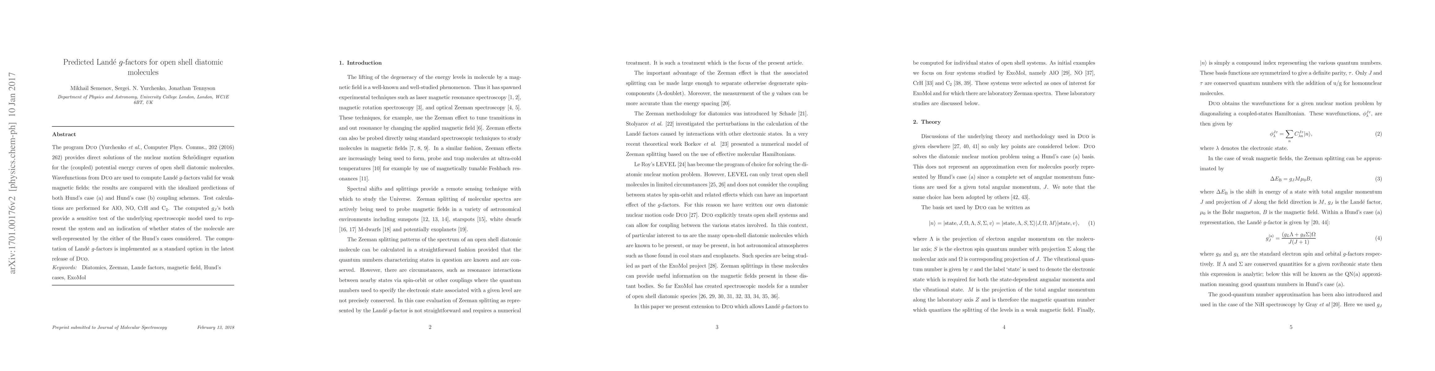 The program {\sc Duo} (Yurchenko {\it et al.}, Computer Phys. Comms., 202 (2016) 262) provides direct solutions of the nuclear motion Schr\"odinger equation for the (coupled) potential energy curves of open shell diatomic molecules. Wavefunctions from {\sc Duo} are used to compute Land\'e $g$-factors valid for weak magnetic fields, the results are compared with the idealized predictions of both Hund's case (a) and Hund's case (b) coupling schemes. Test calculations are performed for AlO, NO, CrH and C$_2$. The computed $g_J$'s both provide a sensitive test of the underlying spectroscopic model used to represent the system and an indication of whether states of the molecule are well-represented by the either of the Hund's cases considered. The computation of Land\'e $g$-factors is implemented as a standard option in the latest release of {\sc Duo}.