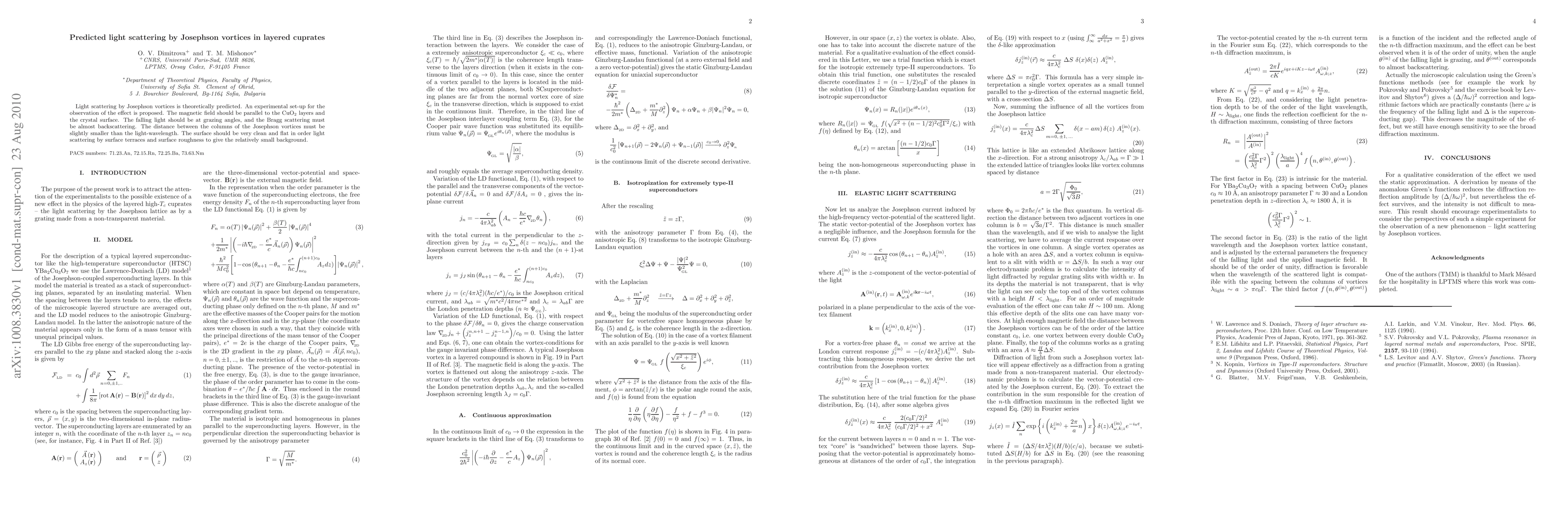The paper presents a theoretical model for light scattering by Josephson vortices in layered cuprates, providing an experimental setup for observing the effect under specific conditions.