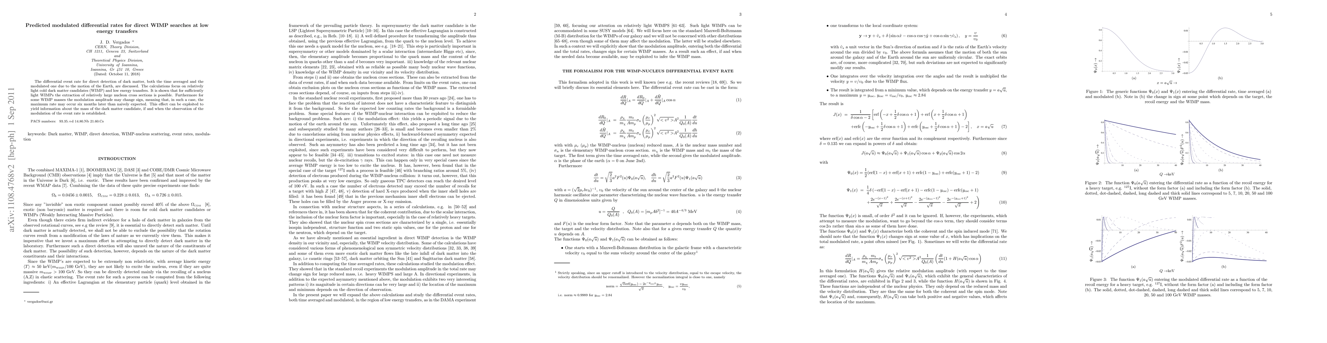 This paper discusses differential event rates for direct dark matter detection, focusing on light WIMPs and low energy transfers. It reveals that for sufficiently light WIMPs, large nucleon cross sections can be extracted, and modulation effects may cause the maximum detection rate to occur six months later than expected, providing insights into the dark matter candidate's mass.