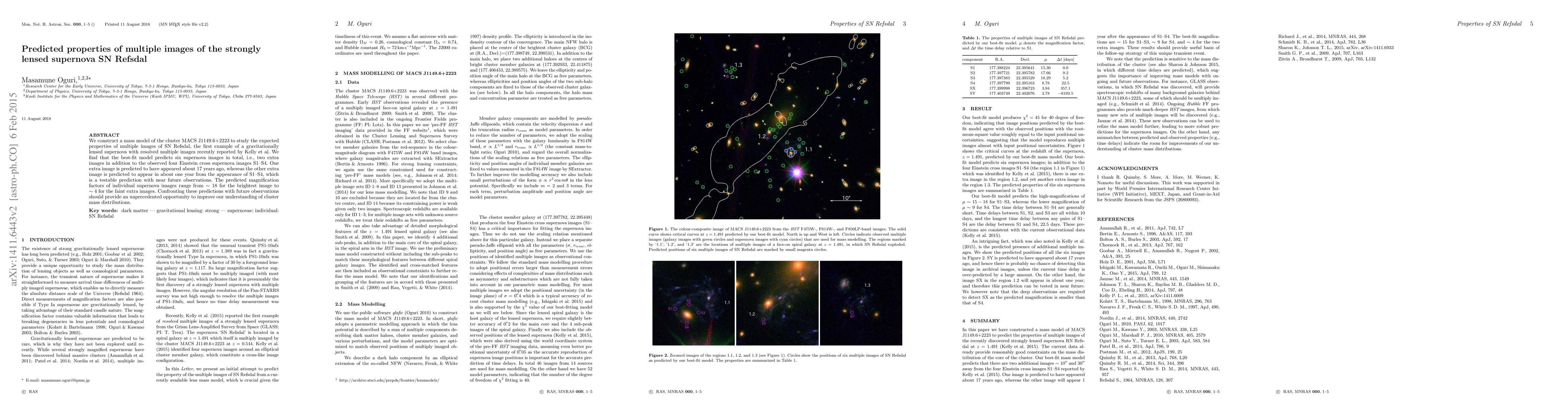 This paper constructs a mass model for the MACS J1149.6+2223 cluster to predict the properties of multiple images of the lensed supernova SN Refsdal, revealing six total images, including four observed and two additional ones. Future observations may confirm the appearance of these extra images, offering insights into cluster mass distributions.