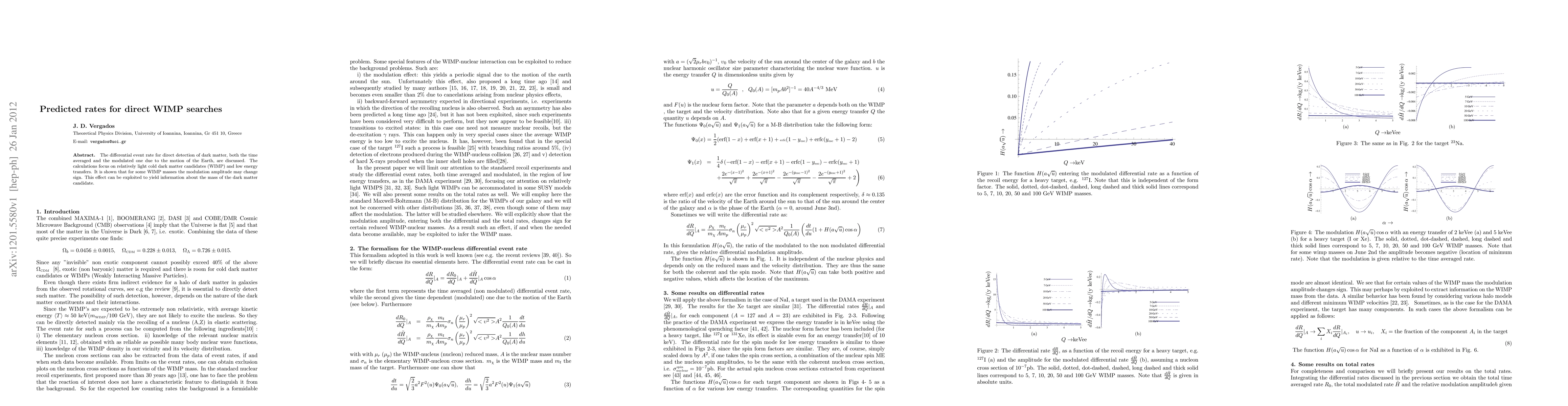 This paper discusses differential event rates for direct detection of dark matter, specifically focusing on light cold dark matter candidates (WIMPs) and low energy transfers. It reveals that modulation amplitude can change sign for certain WIMP masses, providing a method to infer the dark matter candidate's mass.