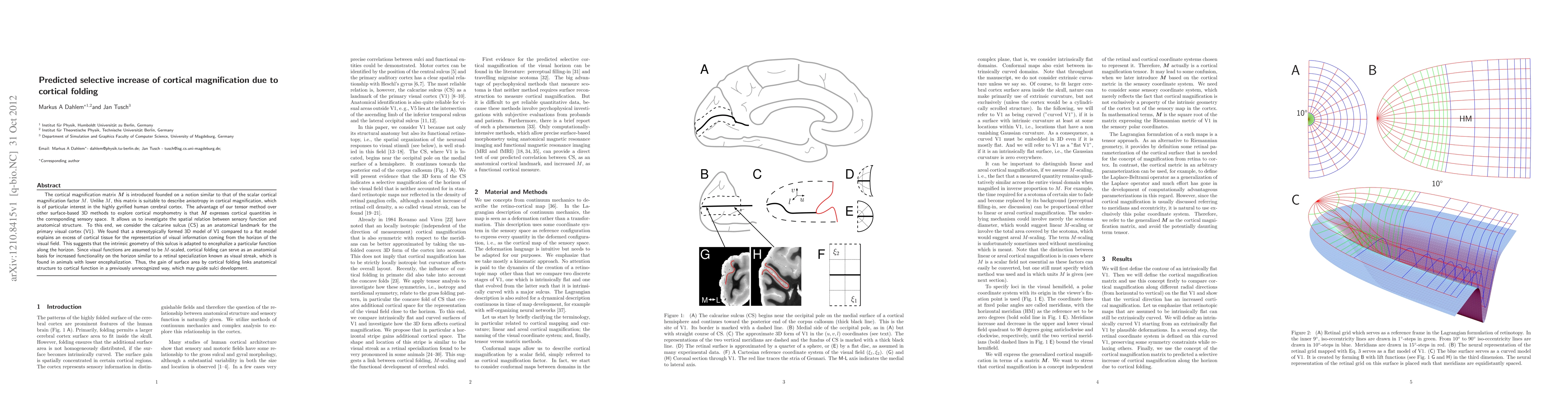 The paper introduces a cortical magnification matrix to describe anisotropic cortical magnification in the gyrified human cortex, revealing that cortical folding increases magnification along the horizon, analogous to visual streak specialization in animals, thus linking anatomical structure to cortical function.