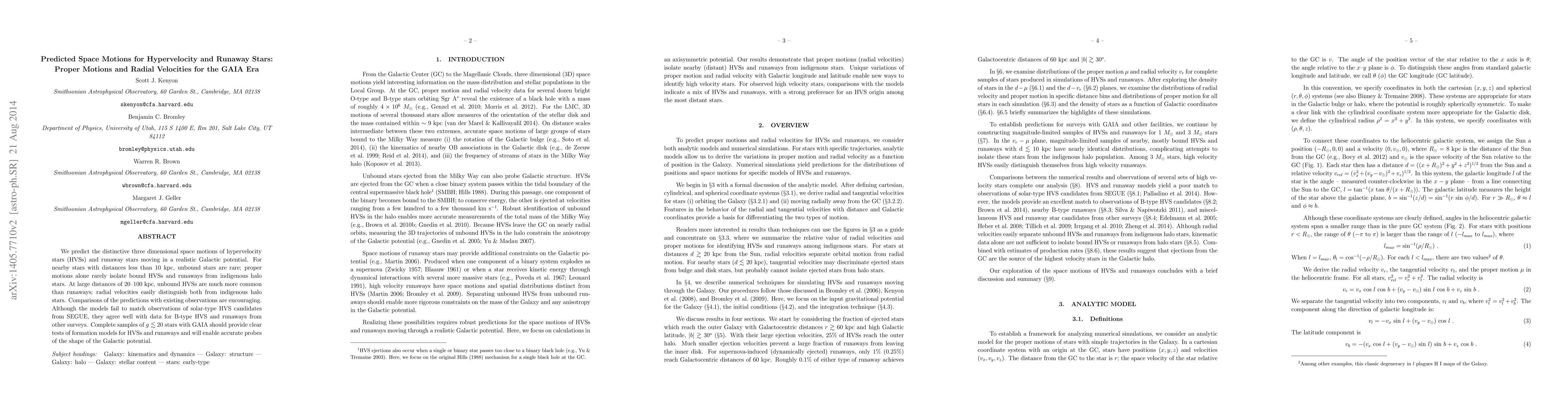 We predict the distinctive three dimensional space motions of hypervelocity stars (HVSs) and runaway stars moving in a realistic Galactic potential. For nearby stars with distances less than 10~kpc, unbound stars are rare; proper motions alone rarely isolate bound HVSs and runaways from indigenous halo stars. At large distances of 20-100 kpc, unbound HVSs are much more common than runaways; radial velocities easily distinguish both from indigenous halo stars. Comparisons of the predictions with existing observations are encouraging. Although the models fail to match observations of solar-type HVS candidates from SEGUE, they agree well with data for B-type HVS and runaways from other surveys. Complete samples of g <= 20 stars with GAIA should provide clear tests of formation models for HVSs and runaways and will enable accurate probes of the shape of the Galactic potential.
