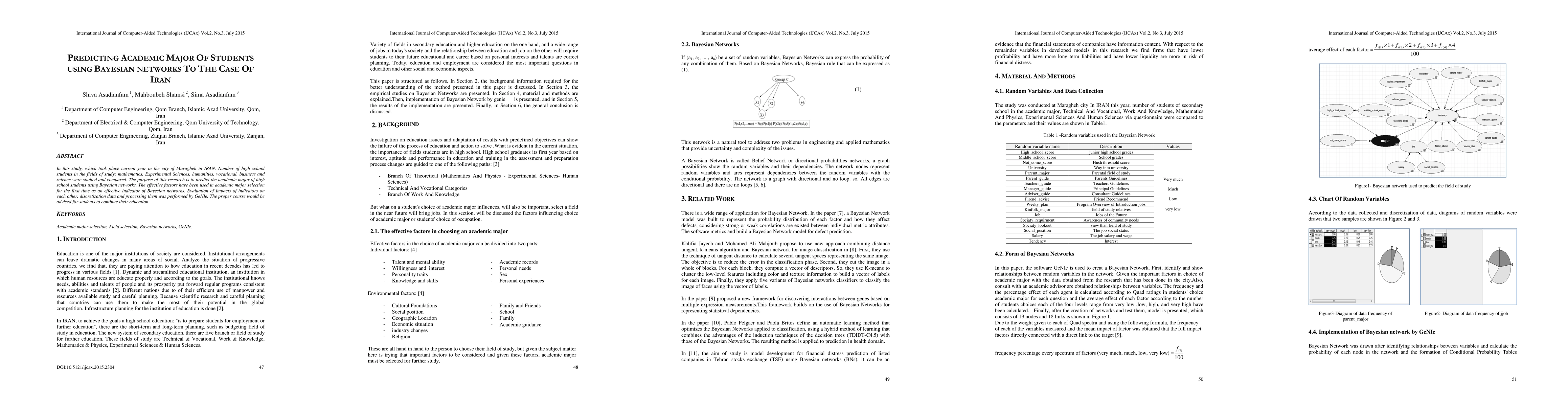 This study in Maragheh, Iran, uses Bayesian networks to predict high school students' academic major choices based on various effective factors. Utilizing GeNIe software, the research evaluates the impacts of these factors and provides tailored educational advice for students.