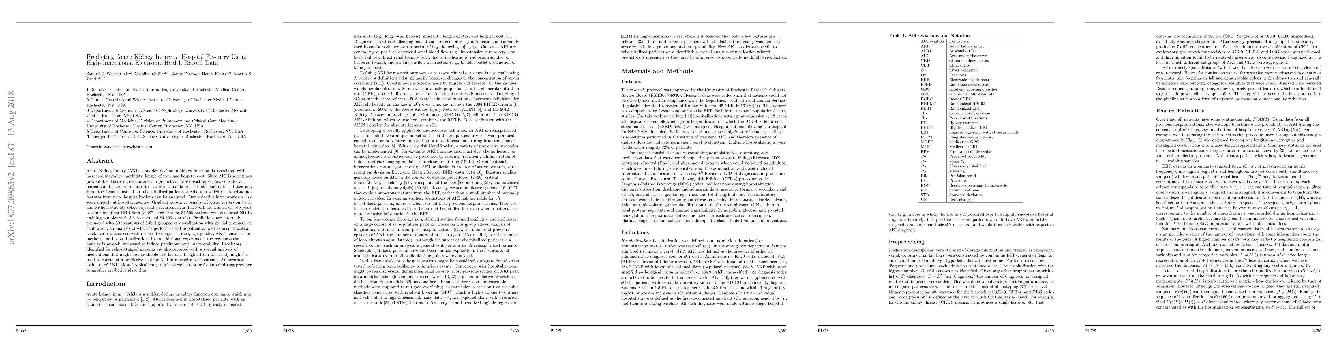 This study develops predictive models for Acute Kidney Injury (AKI) risk in rehospitalized patients using high-dimensional electronic health record data. The models, including gradient boosting and neural networks, leverage longitudinal features from prior hospitalizations, aiming for accurate risk assessment at hospital re-entry.