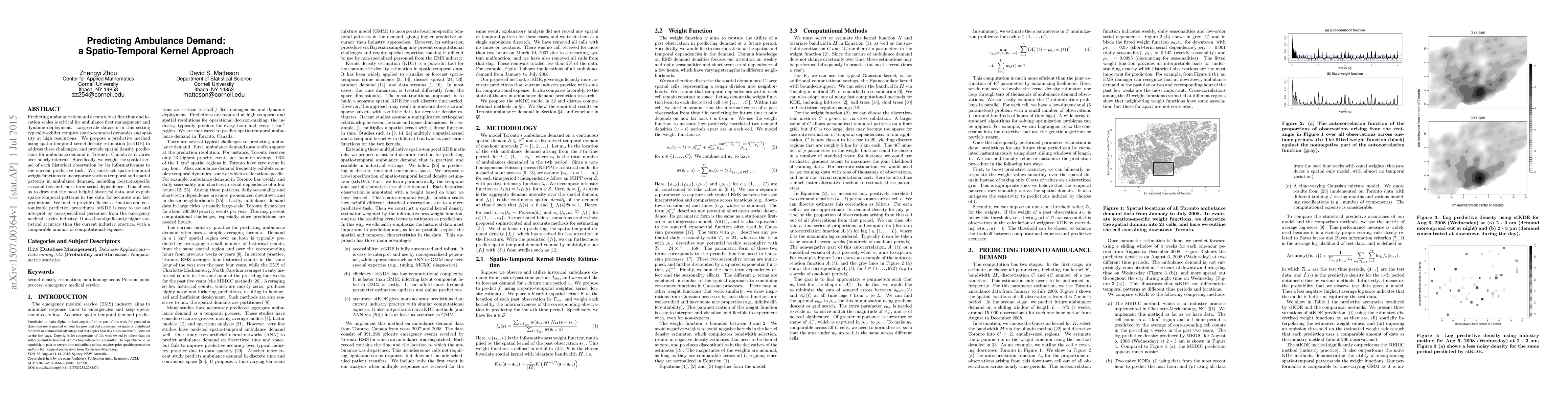 This paper proposes a spatio-temporal kernel density estimation (stKDE) method to accurately predict ambulance demand in Toronto, Canada at fine time and location scales. The approach effectively leverages historical data to provide precise spatial density predictions, outperforming current industry practices in accuracy.