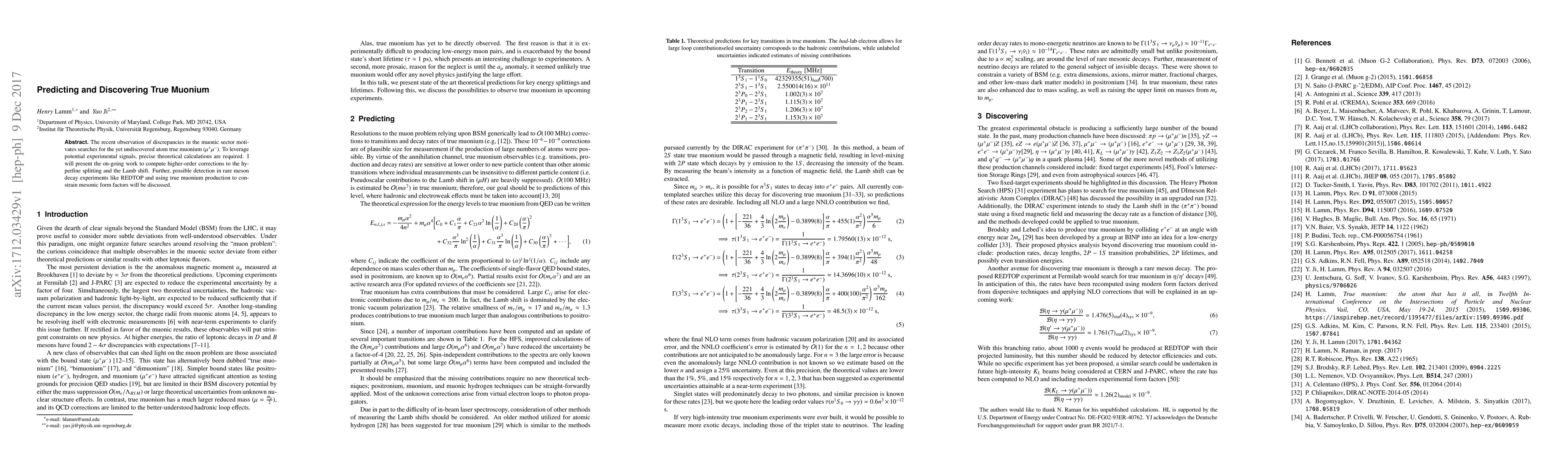 This paper discusses ongoing efforts to compute higher-order corrections for true muonium $(\mu^+\mu^-)$, aiming to predict and discover this elusive atom. It also explores potential detection methods in rare meson decay experiments and its role in constraining mesonic form factors.