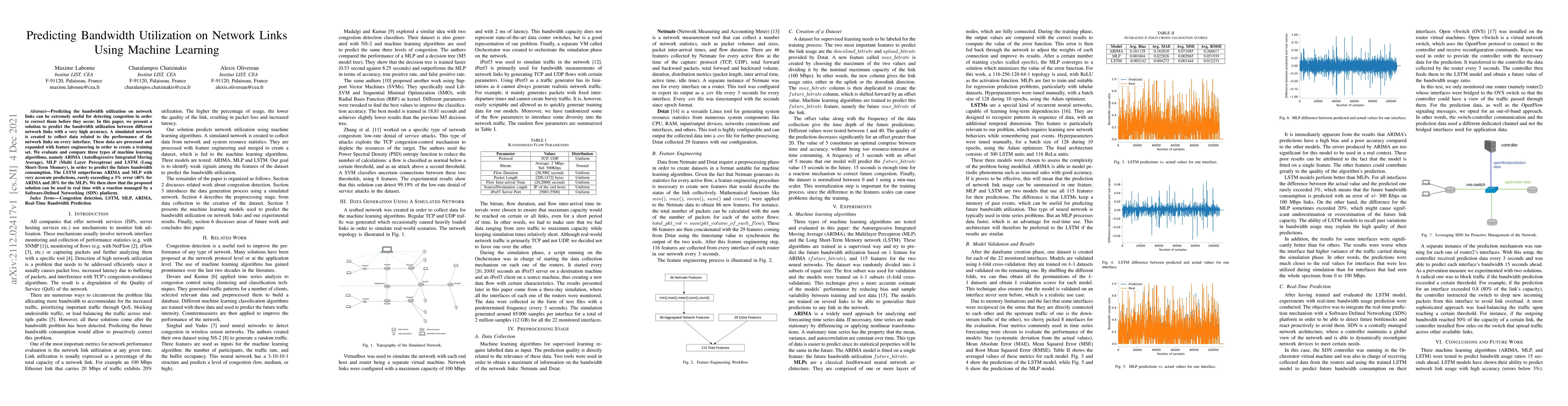 This paper proposes a machine learning model to predict bandwidth utilization on network links, using LSTM to achieve high accuracy with minimal error. The study compares LSTM, ARIMA, and MLP, finding LSTM significantly outperforms the others, and demonstrates its real-time applicability via a Software-Defined Networking platform.
