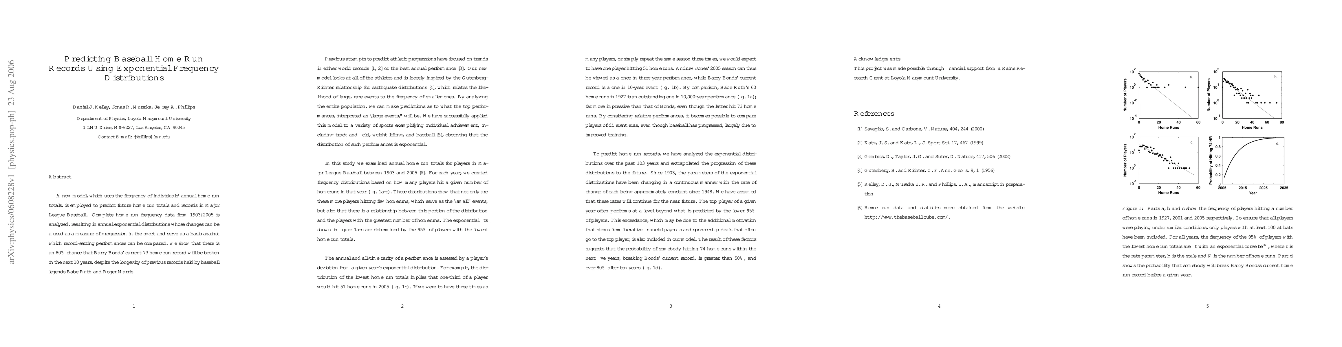 This paper introduces a predictive model using exponential frequency distributions of annual home run totals to forecast future home run records in Major League Baseball. Analysis of data from 1903-2005 suggests an 80% probability that Barry Bonds' 73 home run record will be surpassed within the next decade.