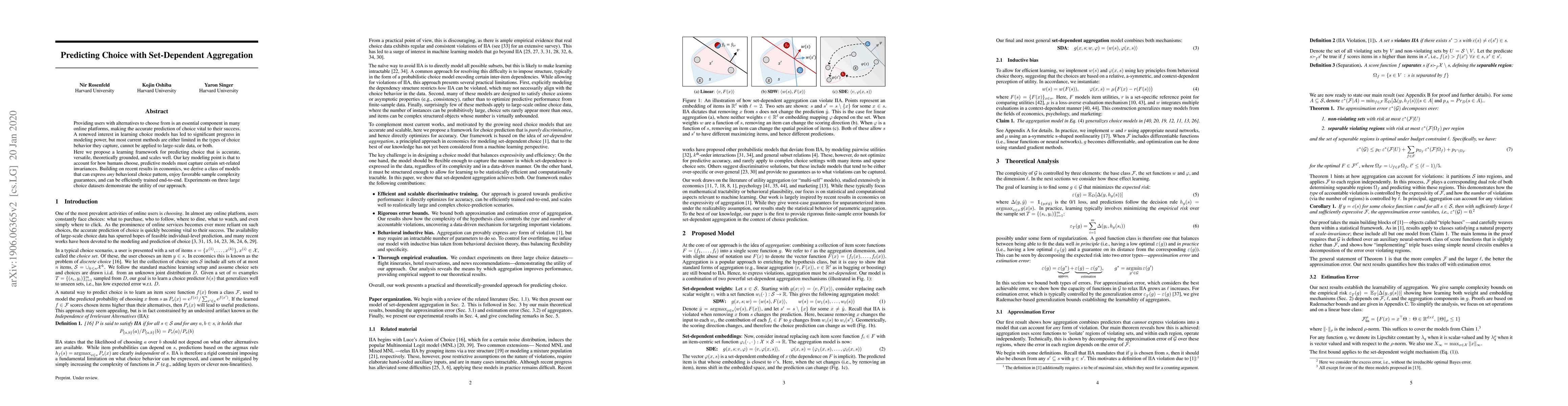 Researchers propose a new learning framework for predicting choice that captures set-related invariances and can express any behavioral choice pattern, demonstrating its utility on three large choice datasets.
